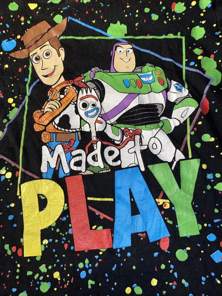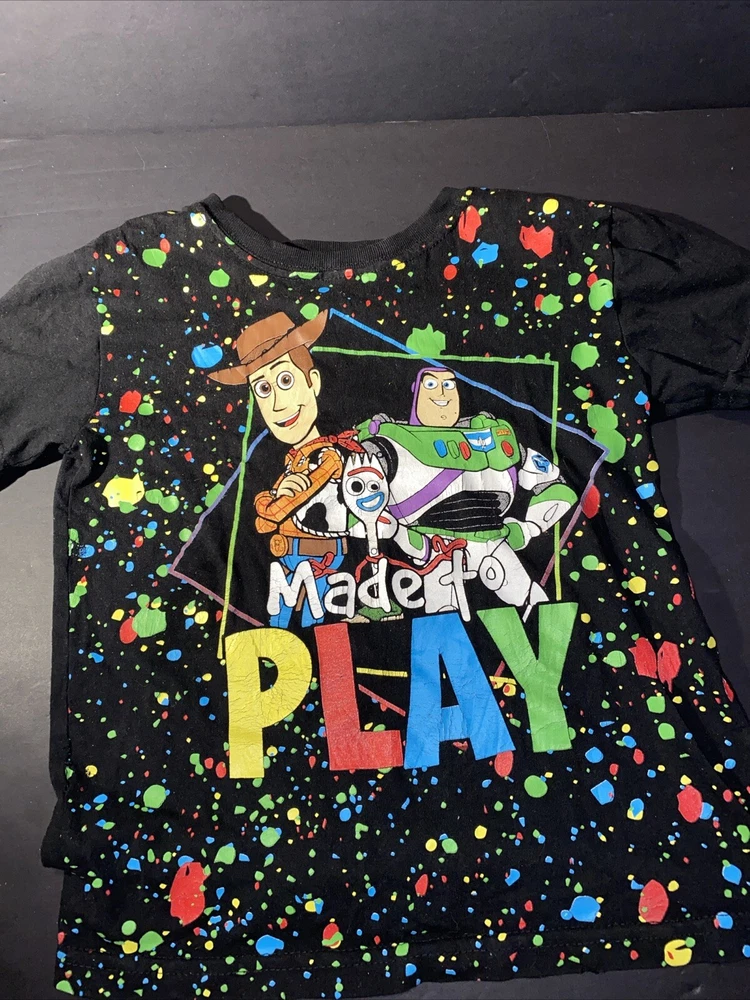 Color: Black Features: All Seasons Country/Region of Manufacture: Mexico Style: Pullover Character Family: Toy Story Theme: Cartoon, TV & Movie Characters, Movie Size: 4 Type: T-Shirt Sleeve Length: Short Sleeve Vintage: No Occasion: Activewear, Casual, Travel Fit: Regular Brand: Disney Pixar Pattern: Graphic Print Department: Boys Closure: Pullover Material: Cotton Performance/Activity: Beach, School, Walking Character: Buzz Lightyear, Woody Season: Fall, Spring, Summer, Winter