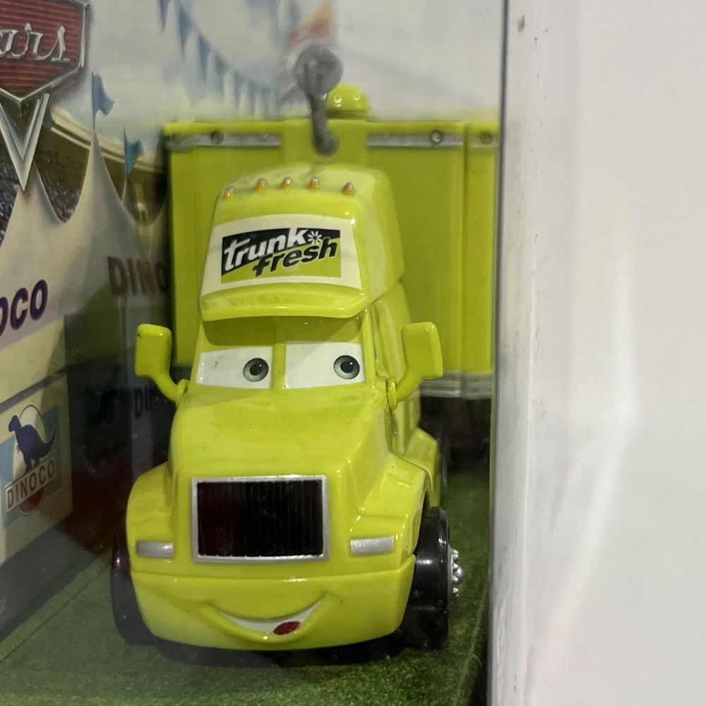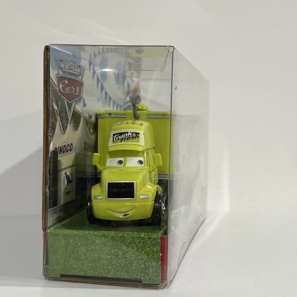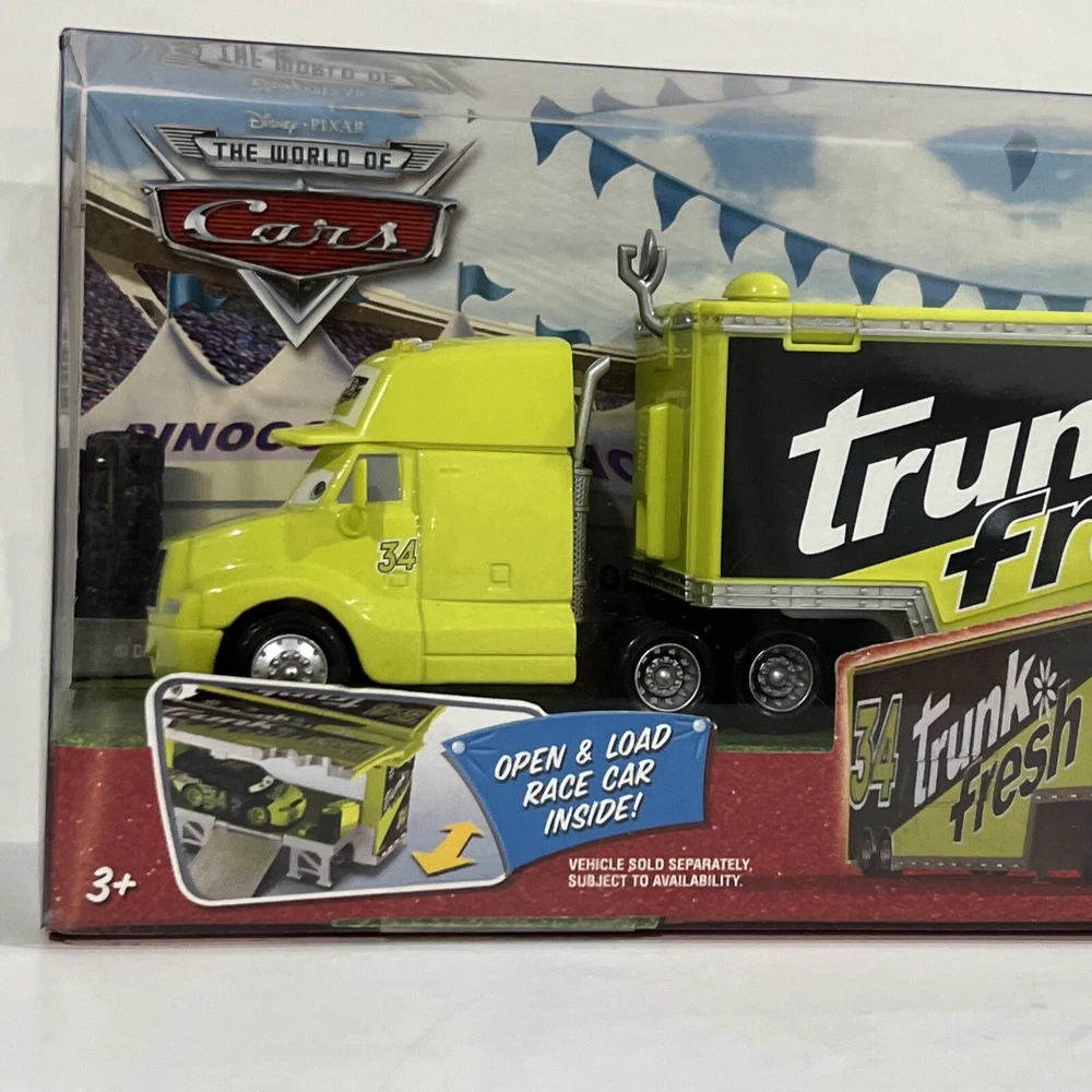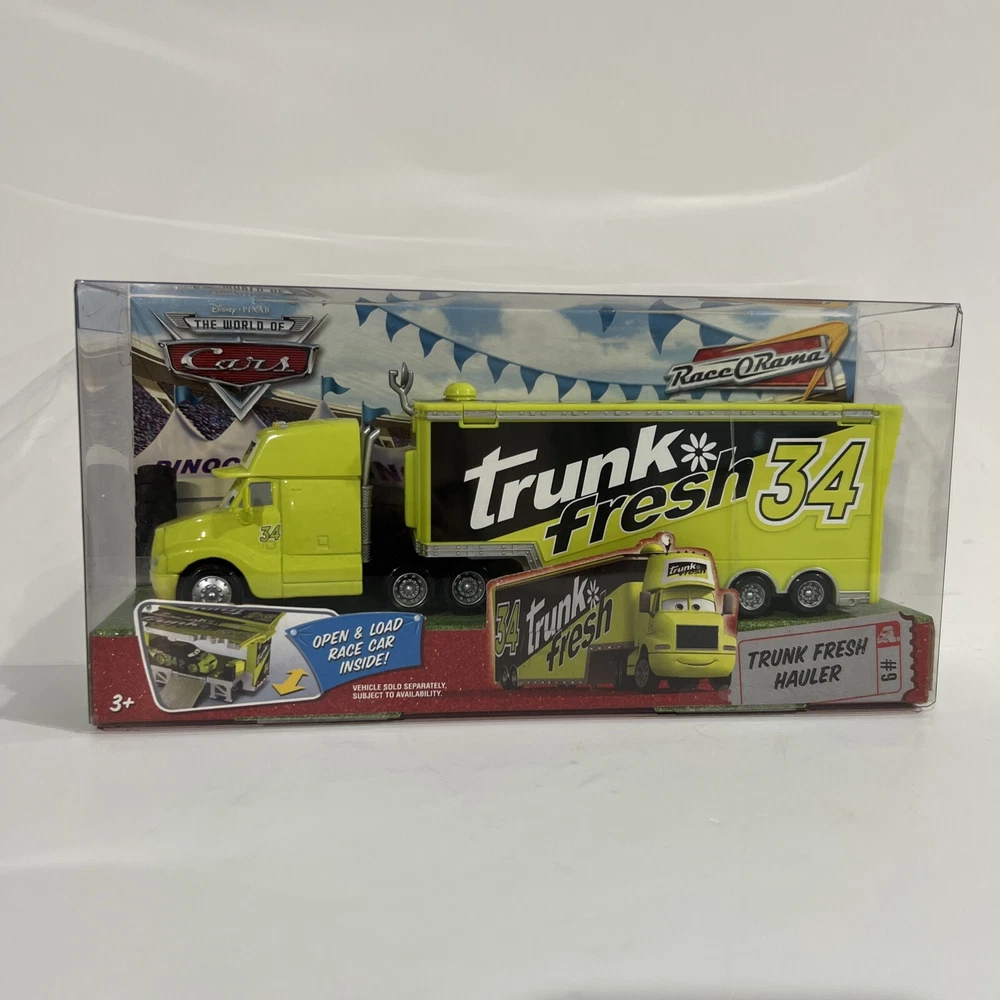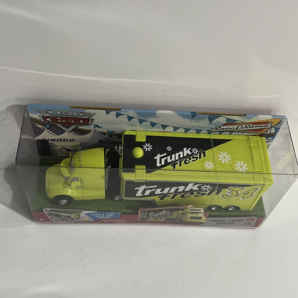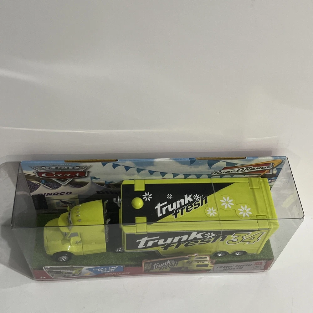 This Disney Pixar Cars lot of 2 includes “TRUNK FRESH” HAULER and “TRUNK FRESH” RACE CAR. They are from the original Cars Movie, and are part of THE WORLD OF CARS RACE O RAMA Series and are part of the “TRUNK FRESH” Race Team. Both items are in EXCELLENT condition. The plastic is in pristine condition and the cardboard shows no signs of shelf wear, no dents, scratches, or creases. They come in original, unopened packaging They have been carefully stored in a dry, smoke-free, pet free environment.