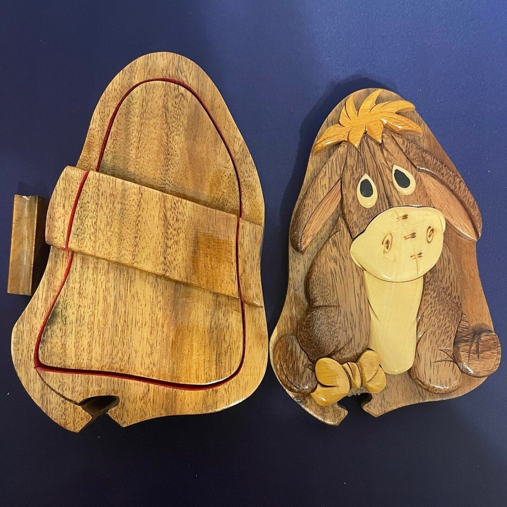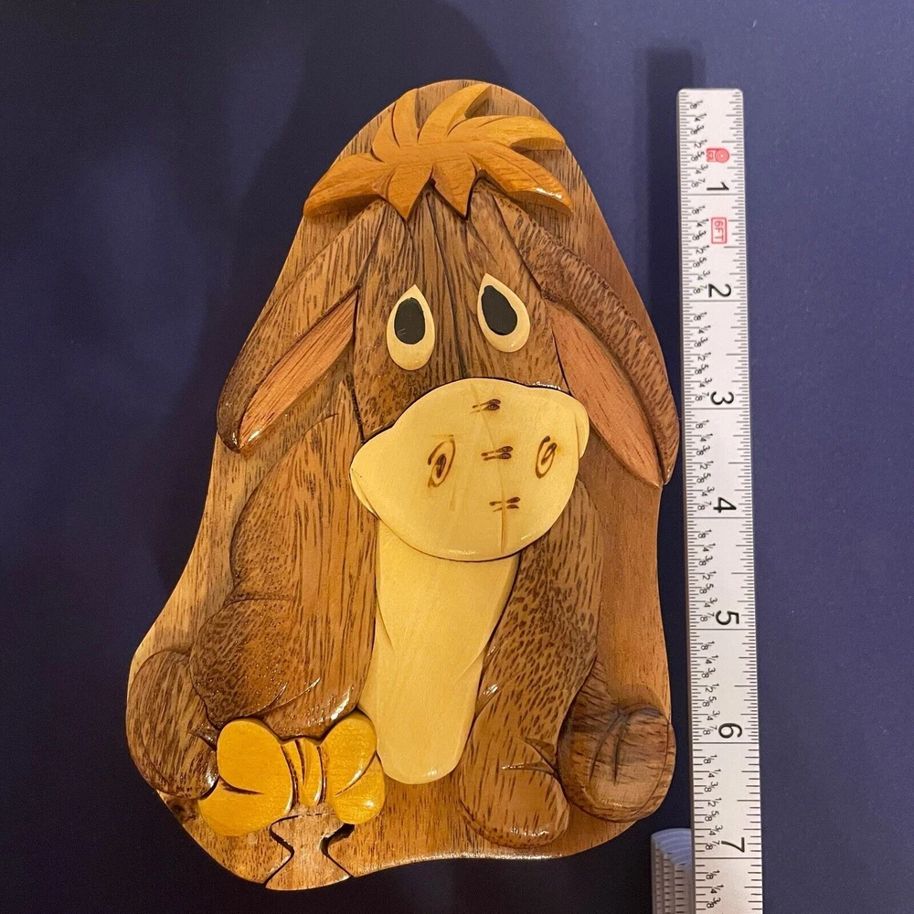 This adorable Eeyore puzzle box is a must-have for Disney fans! The wooden craftsmanship is solid, and the felt lining keeps small treasures safe. It’s both whimsical and functional—perfect for gifting or keeping jewelry organized. The hidden compartment adds a fun surprise, making it even more special. Absolutely love it!