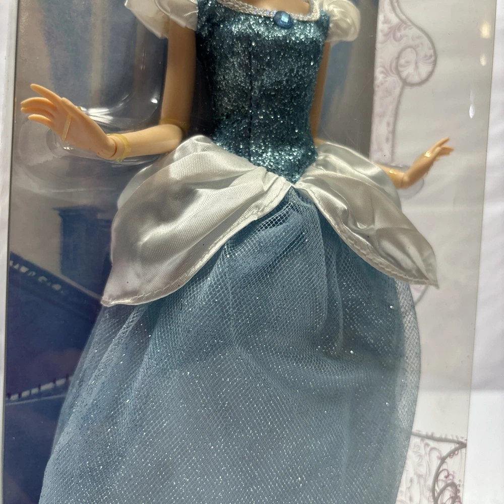 Add a touch of magic to your child's playtime with this Disney Princess Cinderella Doll from the Classic Collection. This 12-inch fashion doll features blonde hair and beautiful blue eyes, and is made of durable plastic material. Perfect for kids aged 3 and above, this original and licensed reproduction doll is a must-have for any Cinderella fan. The set includes the doll itself, and is part of the Cinderella Barbie product line. Let your child's imagination run wild with this beloved Disney character. Please note this doll has never been played..still remain in very good condition ..the box has some small scratches and spots due to movement..please before purchase feel free to reach out to us for any questions or to post more pictures 😊