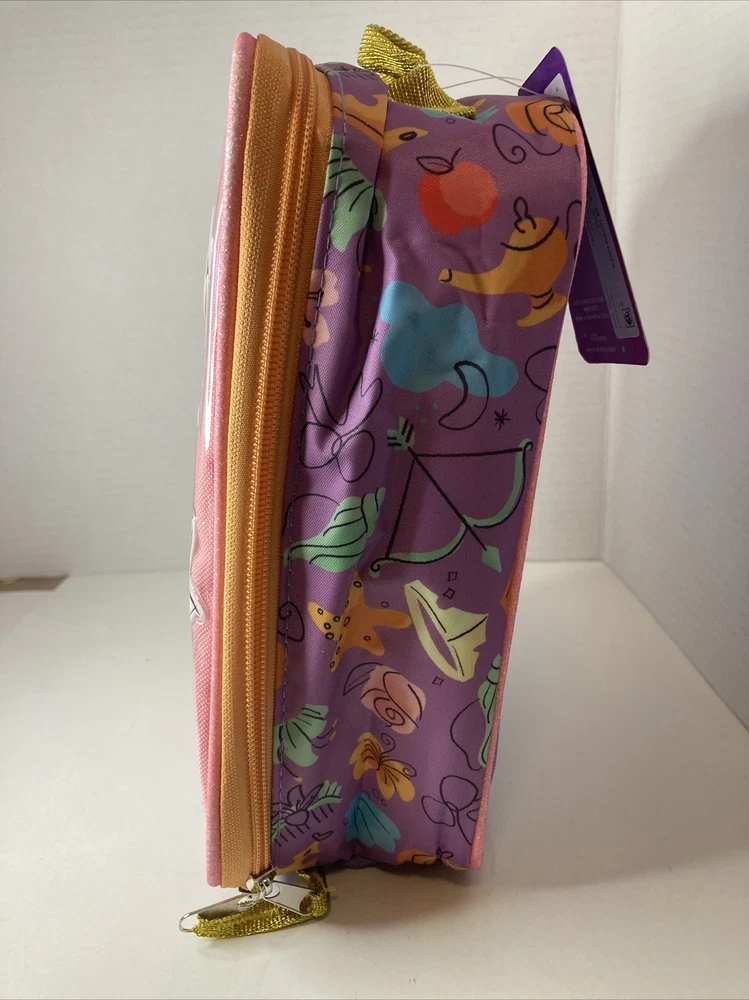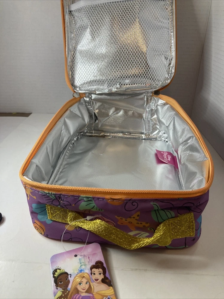 Get ready to make lunchtime extra special with this Disney Princess Feelin Fabulous Reusable School Lunch Bag Box. Featuring Ariel, Tiana, and Belle, this medium-sized rectangle lunch bag is perfect for little girls who want to feel like their favorite princesses. The multicolor bag has a gold glitter princess handle that is easy to carry and adds a touch of magic to any lunchtime routine. Not only is this lunch bag visually appealing, but it also has a lot of great features that make it practical for everyday use. It has dual zippers, an exterior nylon beverage mesh pocket holder, an interior nylon mesh slip pocket, and is insulated, keeping food fresh all day long. With this reusable lunch bag, your little princess will be ready to conquer the day in style!