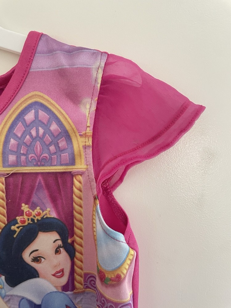 Disney Princess Kids Girls Cinderella Belle Snow White Ruffle Nightgown Pink S. Condition is pre-owned. Smoke free, pet free home. Shipped via USPS Ground Advantage. In good condition. There is a small hole in the sleeve and snags in the fabric all over in the back.