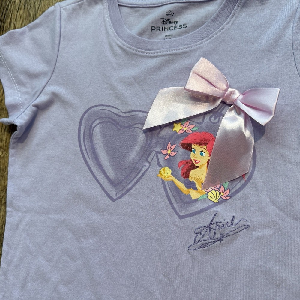 Disney Princess T-Shirt Girls M 7/8 Purple Ariel Graphic Bow Detail NEW