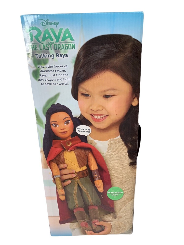Character:RayaRecommended Age Range:3 + yearsTime Period Manufactured:2021Theme:Disney RayaMedia:MovieItems Included:Doll onlyTV Show:RayaYear:2021Type:DollFeatures:Battery OperatedYear Manufactured:2021Material:PlushMovie:RayaMPN:n/aItem Height:14 inCharacter Family:DisneyVintage:NoToy Type:Dolls, Figures & PlushiesSeries:Disney Raya and the last DragonFranchise:DisneyCharacter Type:PrincessDecade:2020Featured Person/Artist:n/agtin13:886144305214UPC:886144305214Character Gender:FemaleOriginal/Licensed Reproduction:OriginalSport:n/aModel:n/aBrand:Just PlayCountry/Region of Manufacture:ChinaSuitable For:Unisex