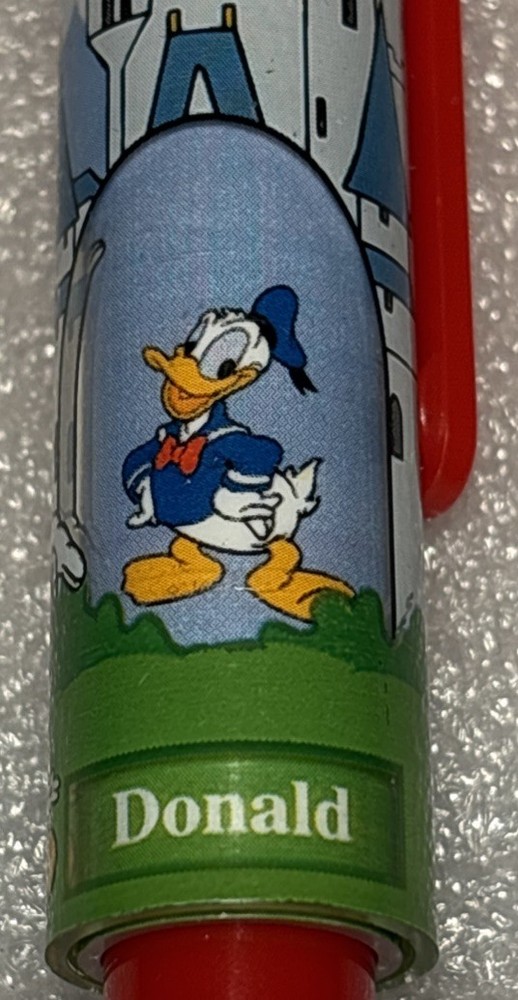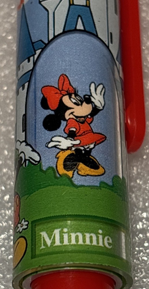 This is a pre owned ink pen with black ink. It manually spins to reveal selectable Disney Characters in a small window in the pen cap. It can be refilled with readily available ink from online retailers.