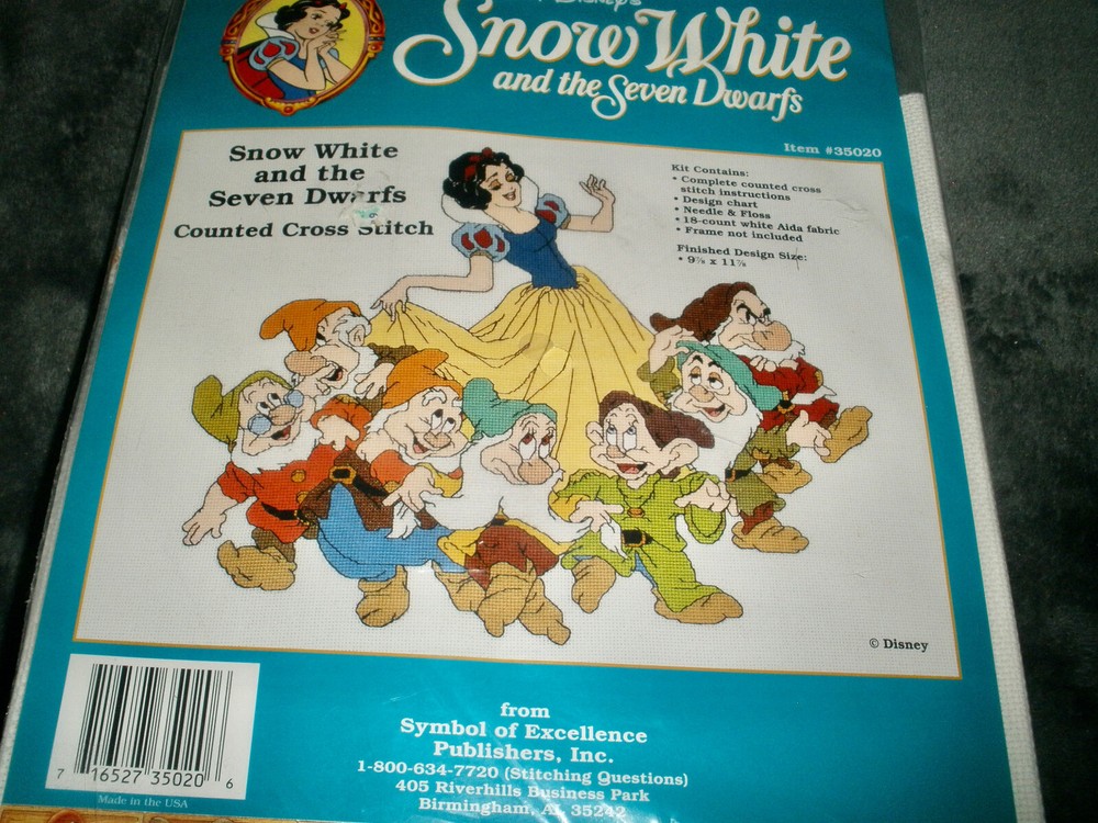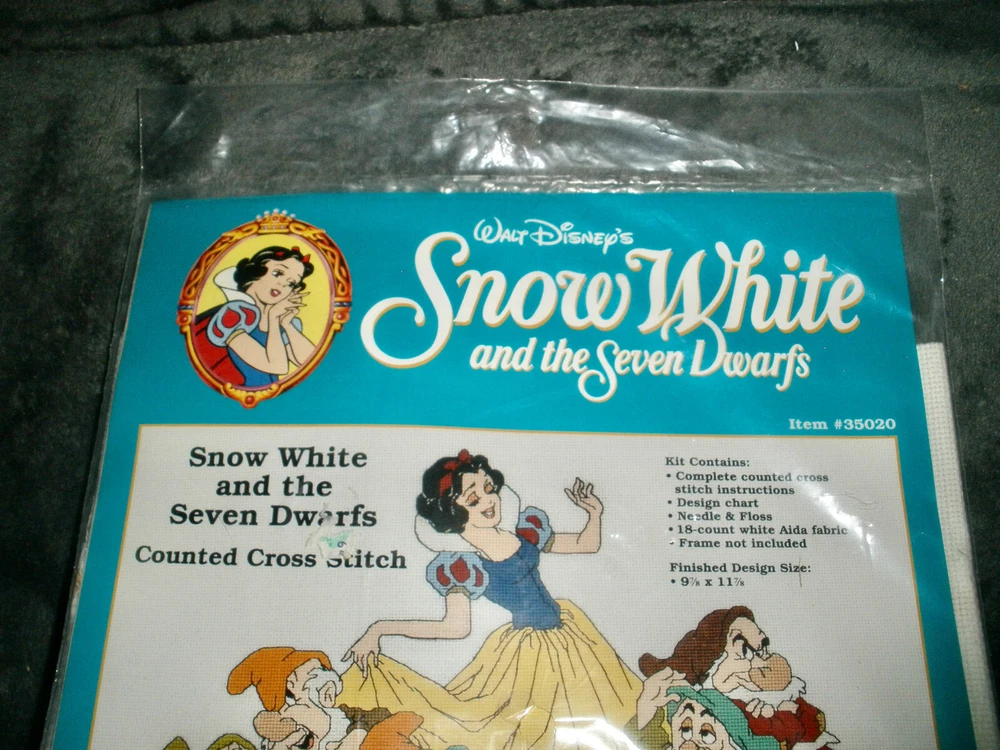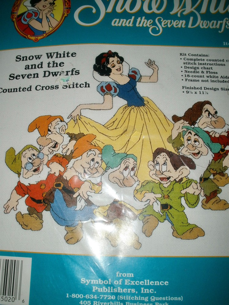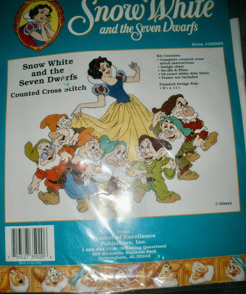 Disney Snow White And The Seven Dwarfs Counted Cross Stitch Kit 35020 Sealed It is new and sealed Kit contains Floss, needle,instructions, 18 ct Aida fabric, Design Chart Finished Size is 9 7/8" by 11 7/8" If you have any questions or problems - before or after. Please message me.