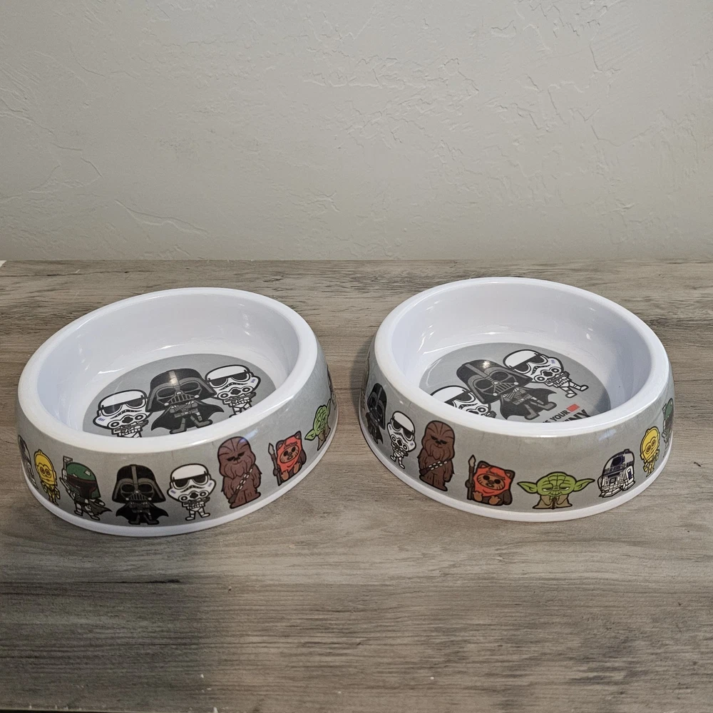 Disney Star Wars Pet Bowls Set of 2 Melamine Darth Vader Chewbacca Yoda Ewok - New with tags! -Set of two bowls - food and water -Hand wash only -Boba Fett, C-9PO, R2-D2, Storm troopers -White with Stars Characters along the edges -6" Same day / next day shipping Offers accepted Like for price drops and deals Bundle 2 items or more and save! Thank you! 10oz SH