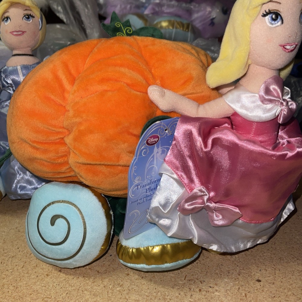 Disney Store Cinderella Plush Doll carriage transforming Condition is New. Shipped with USPS Ground Advantage. It is on plush doll reverses to pink or blue Cinderella Carriage reverses to pumpkin or carriage Photo shows two so you can see but you only get one