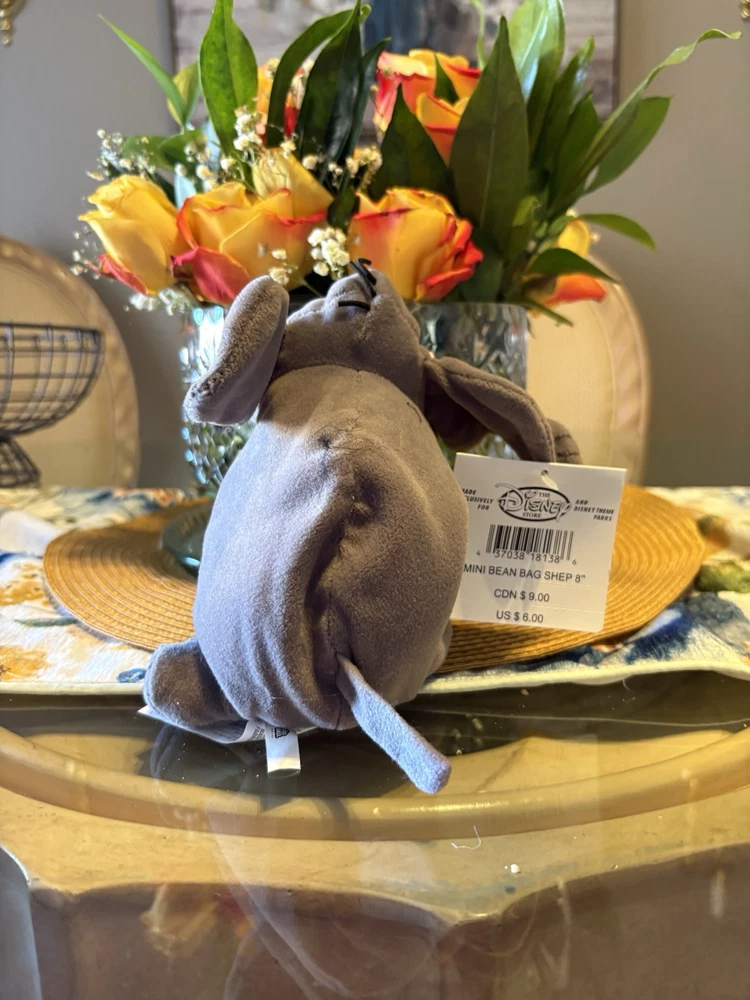 This is a Disney Store plush toy featuring SHEP The Elephant from the George of the Jungle franchise. The bean bag plush measures 8 inches and is new with tags (NWT). It is part of the Disney collection and is perfect for fans of the movie or television show.