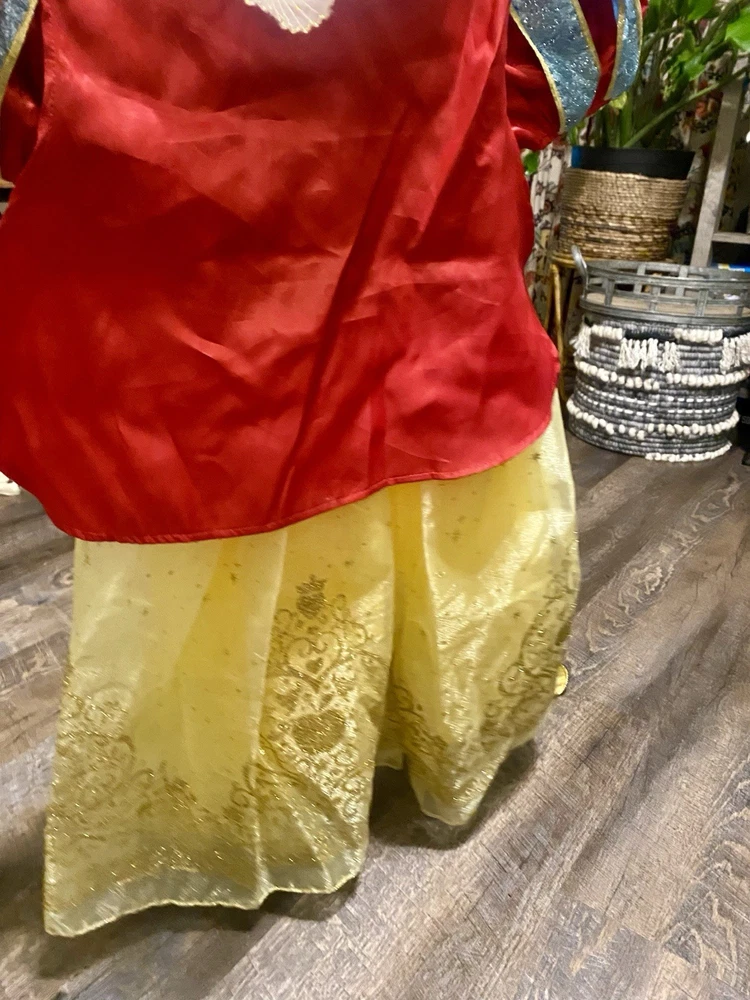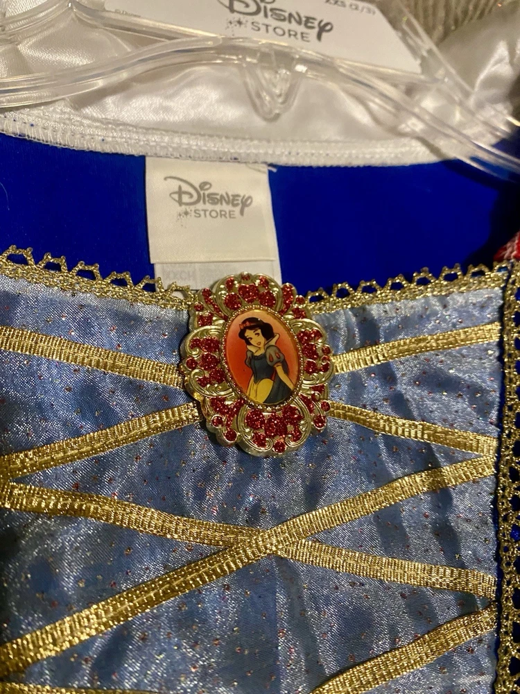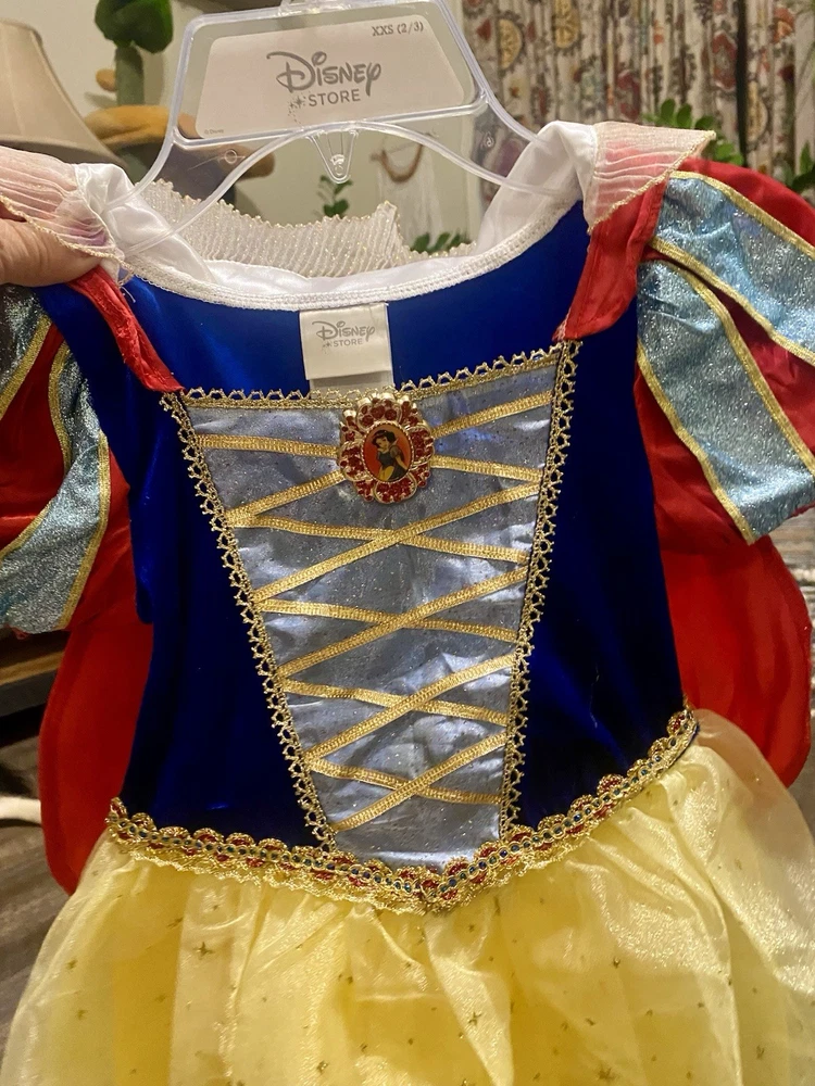 The Disney Store Snow White Princess Dress is a charming outfit for young children, featuring a multi-color design with styling elements inspired by the beloved Princess Snow White. Made of polyester material, the dress has a stretchy elastic quality for comfort and ease of movement. This Princess-themed set also includes a matching headband, shoes, and purse, adding a whimsical and complete touch to the overall ensemble. Made in China, this Disney-themed outfit is perfect for young fans looking to dress up like their favorite princess.