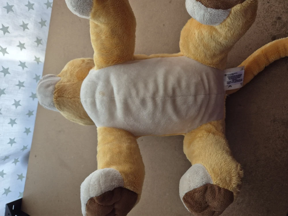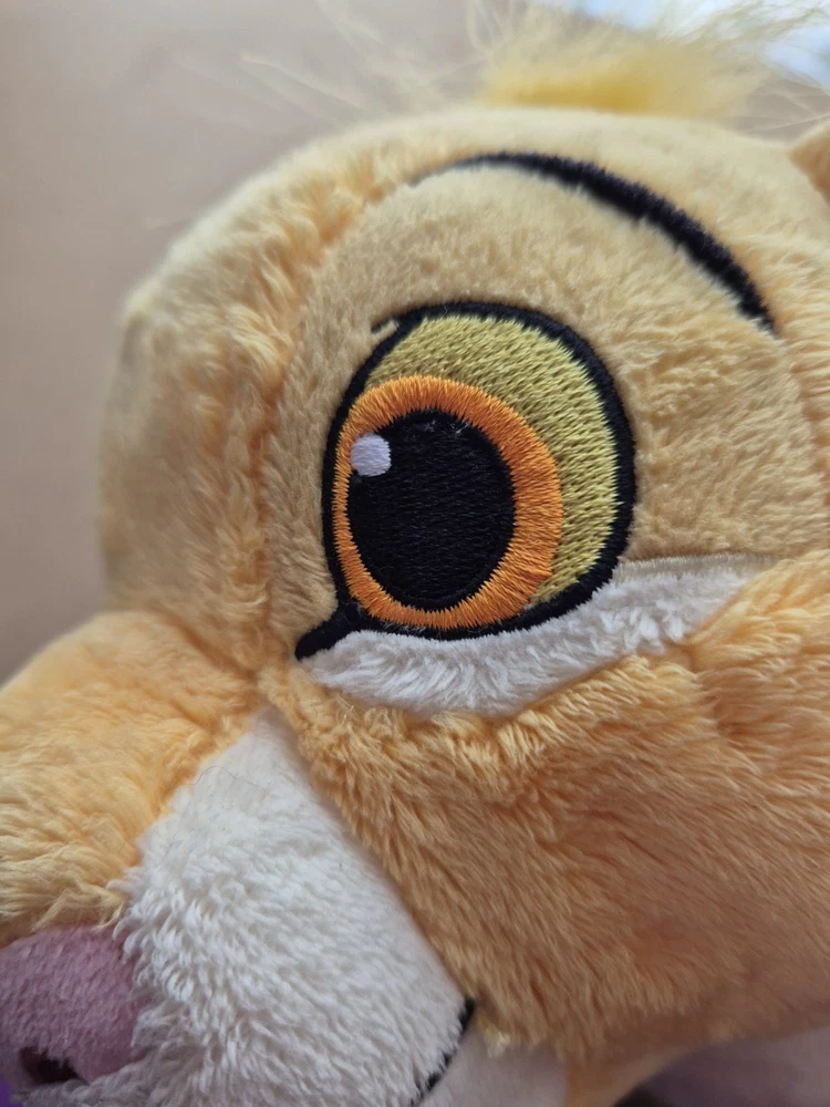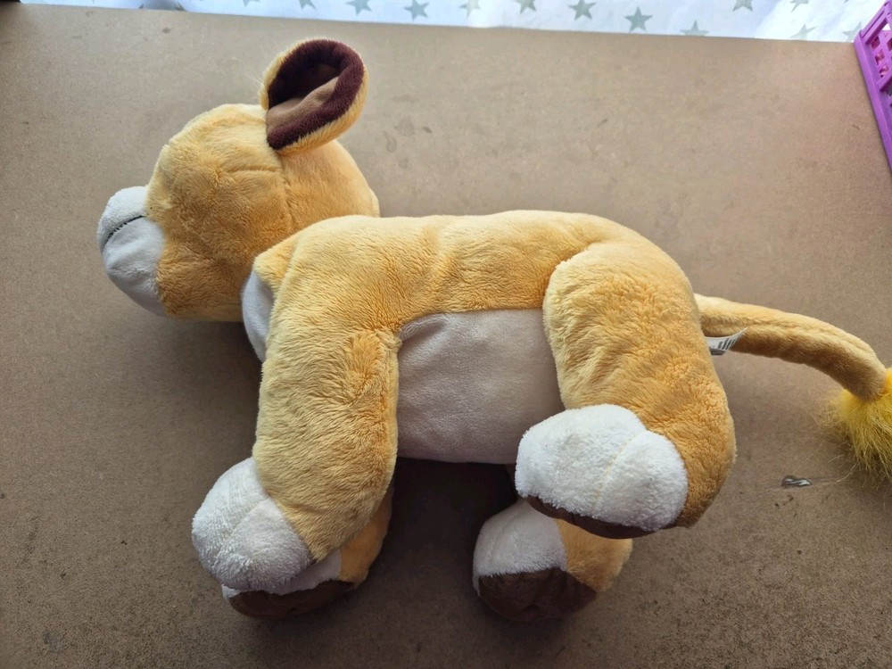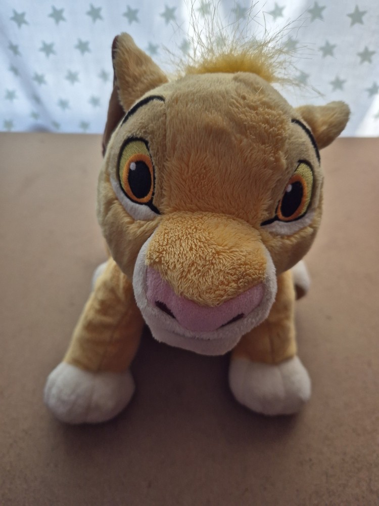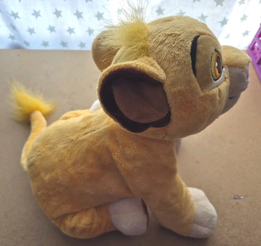 Disney Store The Lion King Young Simba Large Plush Soft Toy. Hole By Tail. Condition is Good. The Simba is a pre-owned item and has some signs of wear to the surface. There are some scuffs to the surface due to playwear. There is a hole near the tail where the tail joins the body. It can probably be sewn up by someone with the appropriate skills. Size of item 31cm approx Send me a message if you have any questions about this item! Dispatched with Royal Mail/ Evri