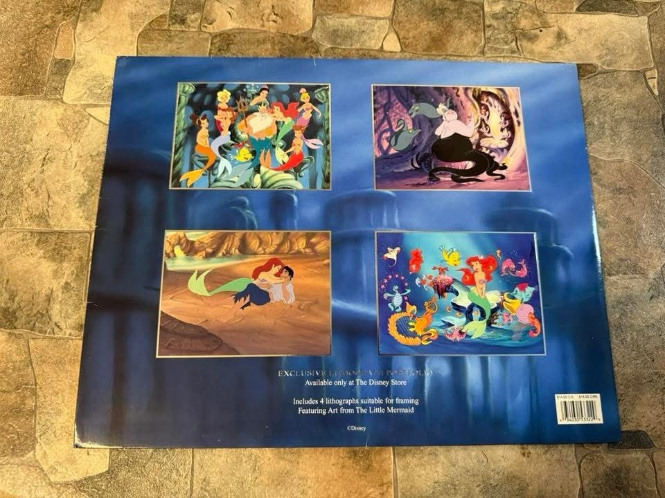 The Disney Store The Little Mermaid Exclusive Lithograph Portfolio Art Print Poster features Ariel from the beloved Disney movie "The Little Mermaid." This high-quality lithograph, manufactured in the United States in 1998, is a collector's item for fans of the franchise. Perfect for framing and displaying, this poster captures the magic and nostalgia of this classic Disney film.