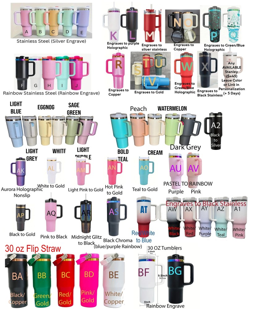 Calling all Disney Toy Storyfans! Show off your Buzz Lighteay and Woody pride with our custom engraved Quencher Tumbler Available in 30 oz Stanley Dupe, 40 oz Stanley Dupe, and Genuine Stanley Branded variations featuring a Toy Story theme. Unlike decals, our designs are laser etched onto the stainless steel and will last for the lifetime of the cup. Add a stainless steel or rainbow metal straw to your order for a complete set. Our tumbler features a design with the iconic Movie Characters. Want to personalize it with your name or add a quote, character, or something else? Let us know in the personalization field. Made with high-quality, stainless steel and double insulated, our tumblers are built to last. Some colors are coated to add a unique engraving effect. These fit all Stanley accessories, including lids, toppers, sleeves, and more. They are full dupes of the Stanley Quencher H2.0 Tumbler, down to the matching lids, handles, and color inlays on the tops and handles as well. No sweating, keep your drinks cold for hours. If your desired color is not pictured, check out our other listings or our TikTok for videos of all available colors and design ideas. Upgrade your tumbler game and join the macical world of Disney with our high-quality, custom engraved Quencher Tumbler Available in 30 oz Stanley Dupe, 40 oz Stanley Dupe, and Genuine Stanley Branded variations . Order yours today and get ready to impress! Looking for a custom Stanley Tumbler? Select it in the dropdown! Looking for smaller 30oz options? Select it in the dropdown! We also take custom design requests, perfect for business logos, promotional items, gifts, and more. Some Product Photos may show varying tumbler styles (30 oz, dupe, 40 oz dupe, and Stanley-branded variations). Please select the tumbler type from the drop-down menu that you wish to purchase! We offer non-branded and genuine Stanley-branded options. The cup you will receive will be the color you select in the drop-down menu, with the design pictured in the listing. The design may be modified using the personalization field, and it may also be modified to accommodate the size of your cup. Colors vary by monitor, we try to make sure our colors are as close as possible to real life, but slight differences in display color vs actual color may occur.