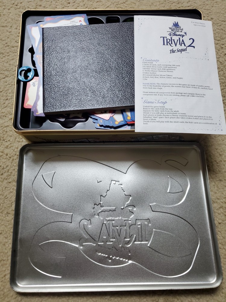 Wonderful World of Disney Trivia 2 The Sequel Board Game Complete Mickey Mouse Tin is little beat up but game in game shape and is complete