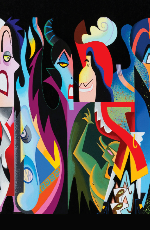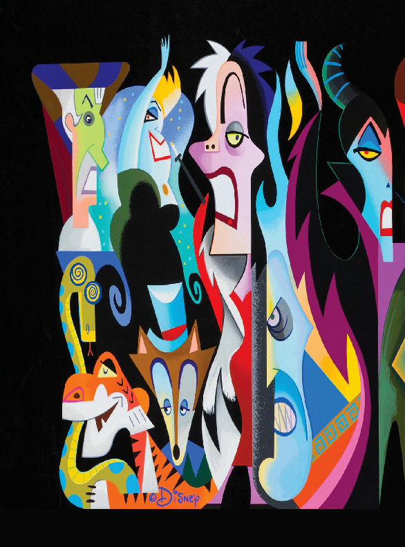 Disney Villains 13x19 Art Poster Featuring Hook Maleficent Ursula Cruella on Satin