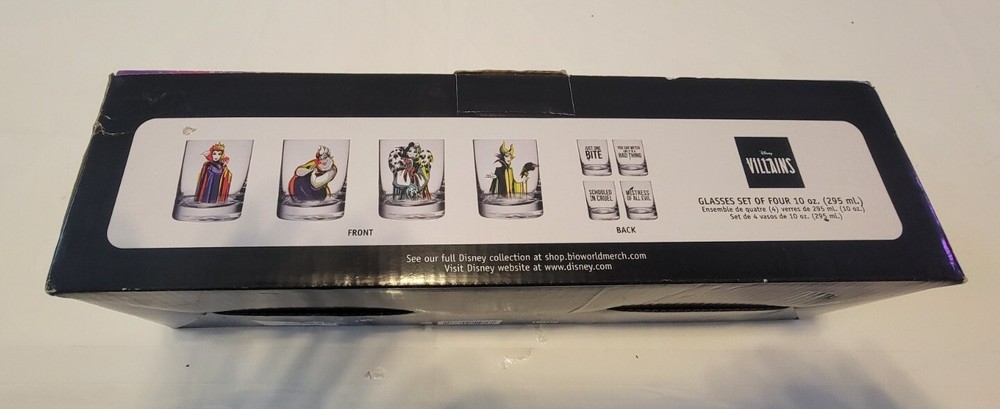 Type: Glass Brand: Disney Model: Disney Villains Glassware Type: Drinking Glass Character: Maleficent Number of Items in Set: Four-Piece Department: Adults Color: Clear Set Includes: Glassware Set Capacity: 10 oz Material: Glass Occasion: All Occasions Theme: Cartoons, TV & Movie Characters Care Instructions: Hand Wash Only Character Family: Disney Villains
