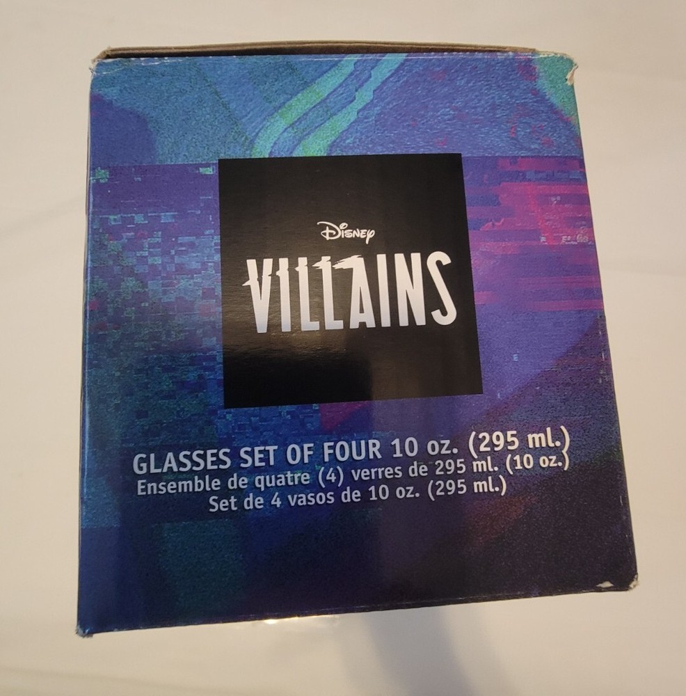 Disney Villains 4-Piece 10oz Glass Set Featuring Ursula Maleficent Cruella Evil Queen