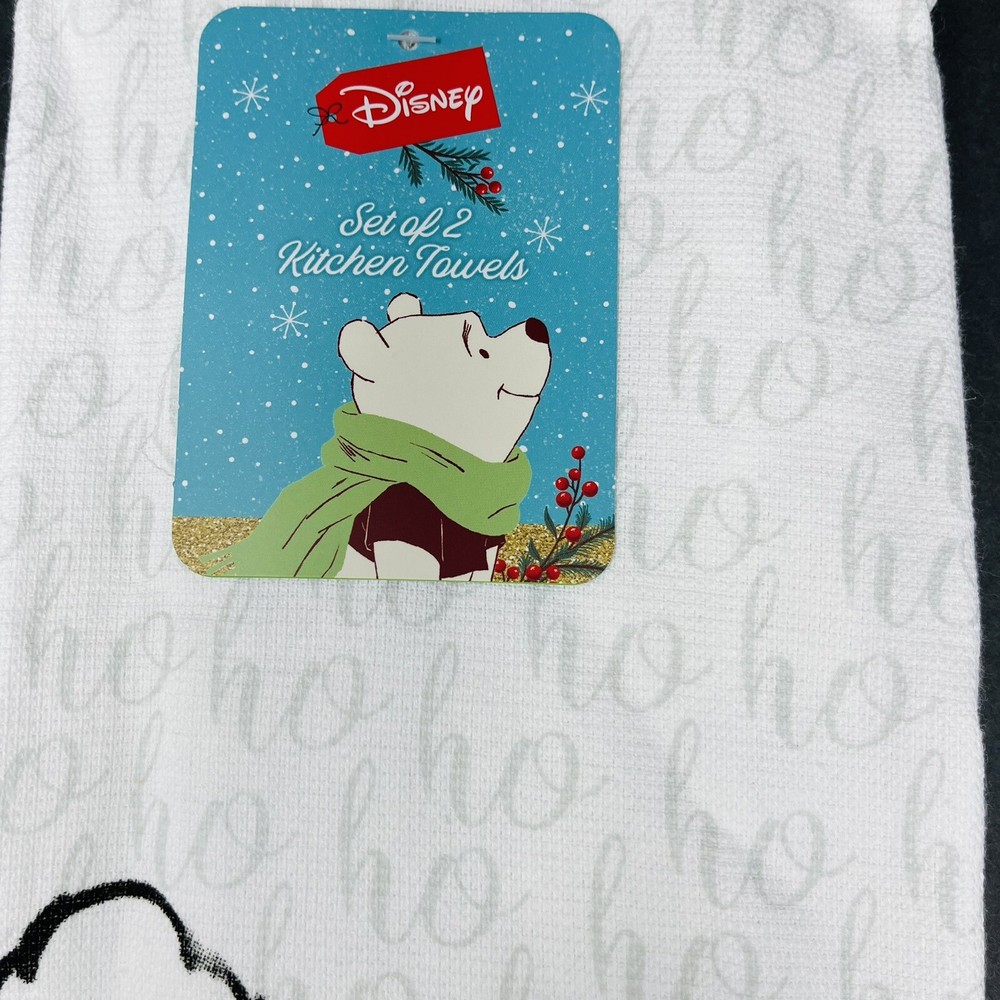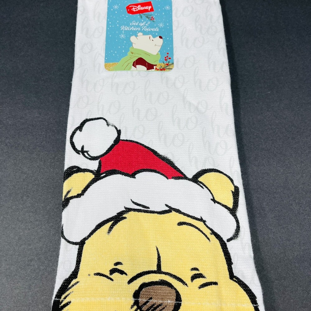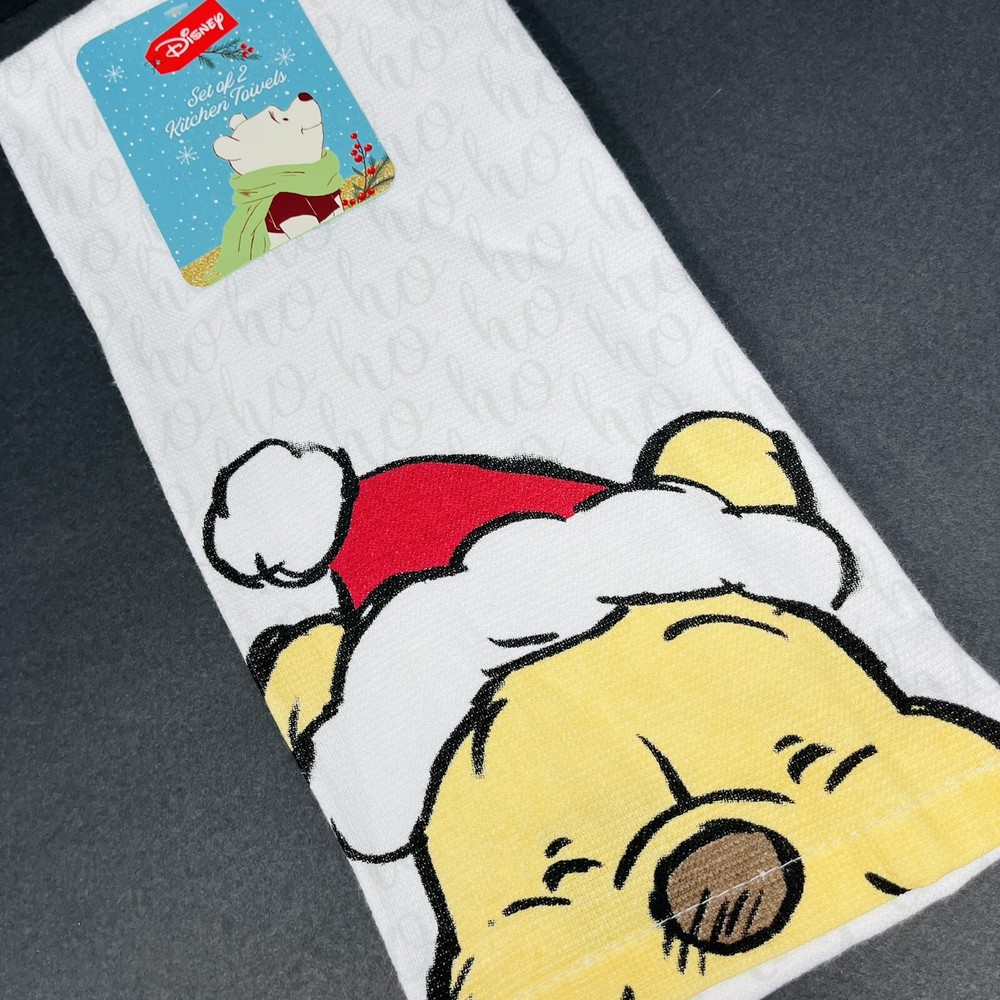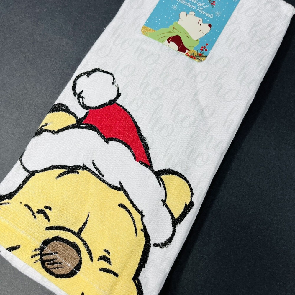 HomeDisney Winnie Pooh 2 Pack Kitchen Hand Towels Christmas Santa Hat Ho Ho Ho NEW
