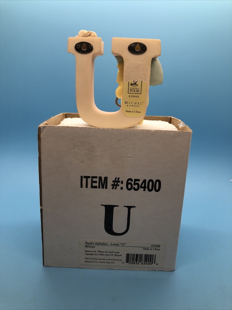 Disney Classic Winnie the Pooh Nursery Figurine Alphabet Letter "U" Umbrella. Note that whatever little thing was up against the bottom of the U is missing. Please also note that this is a pre owned item which may have various cosmetic blemishes, including signs of wear, dust, markings and imperfections due to its previous use, age, movement, and storage. It should also be noted that color may vary from photos due to camera flash or/and computer monitor color variations. If condition concerns you, please review the images closely before purchasing, zooming in as necessary. Questions are also welcomed. SKU L/19/9/22