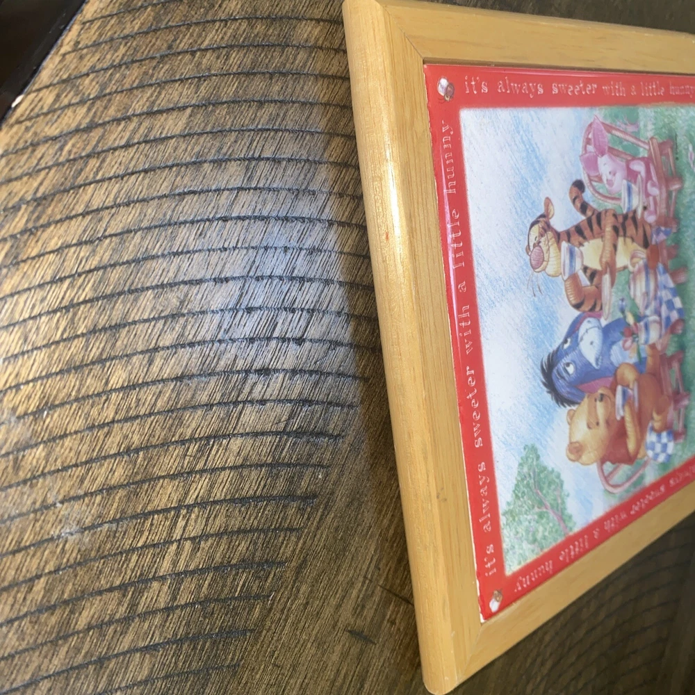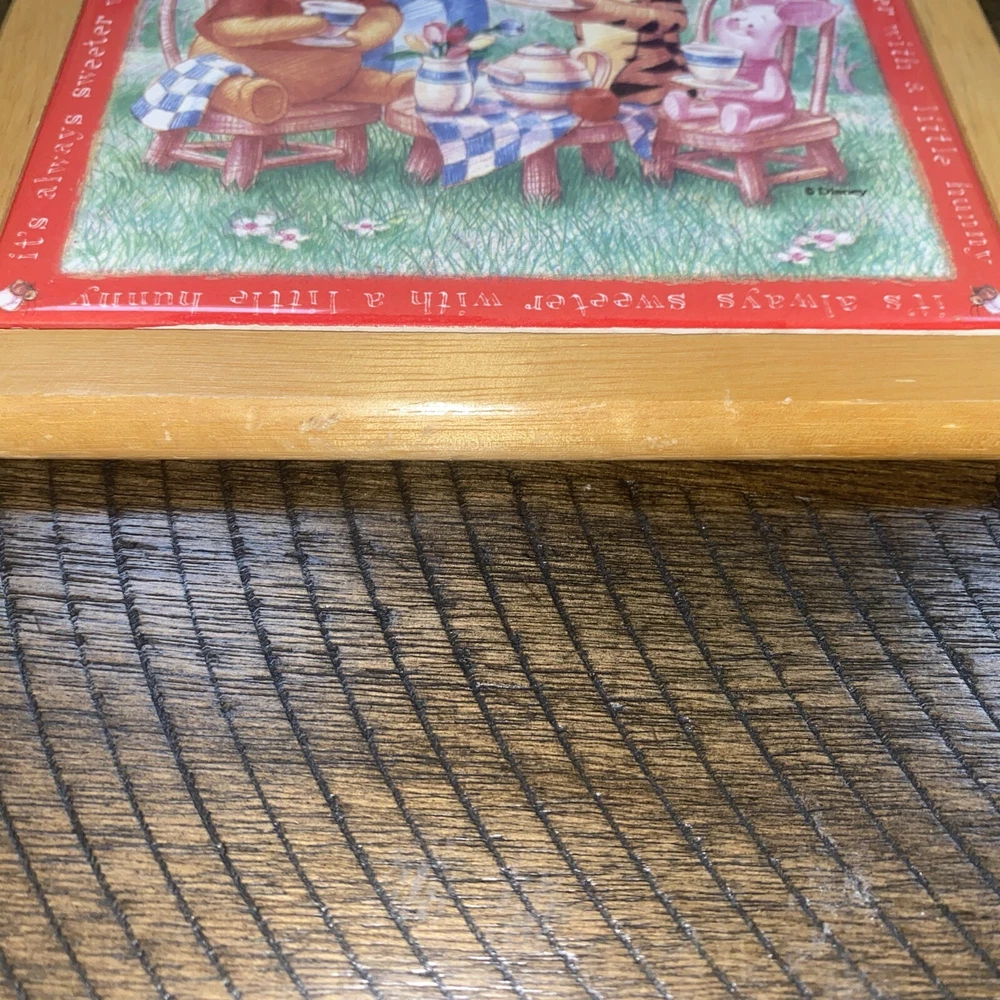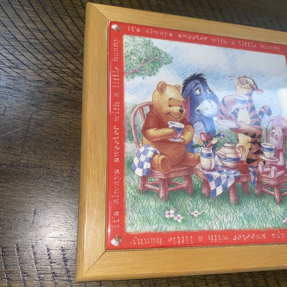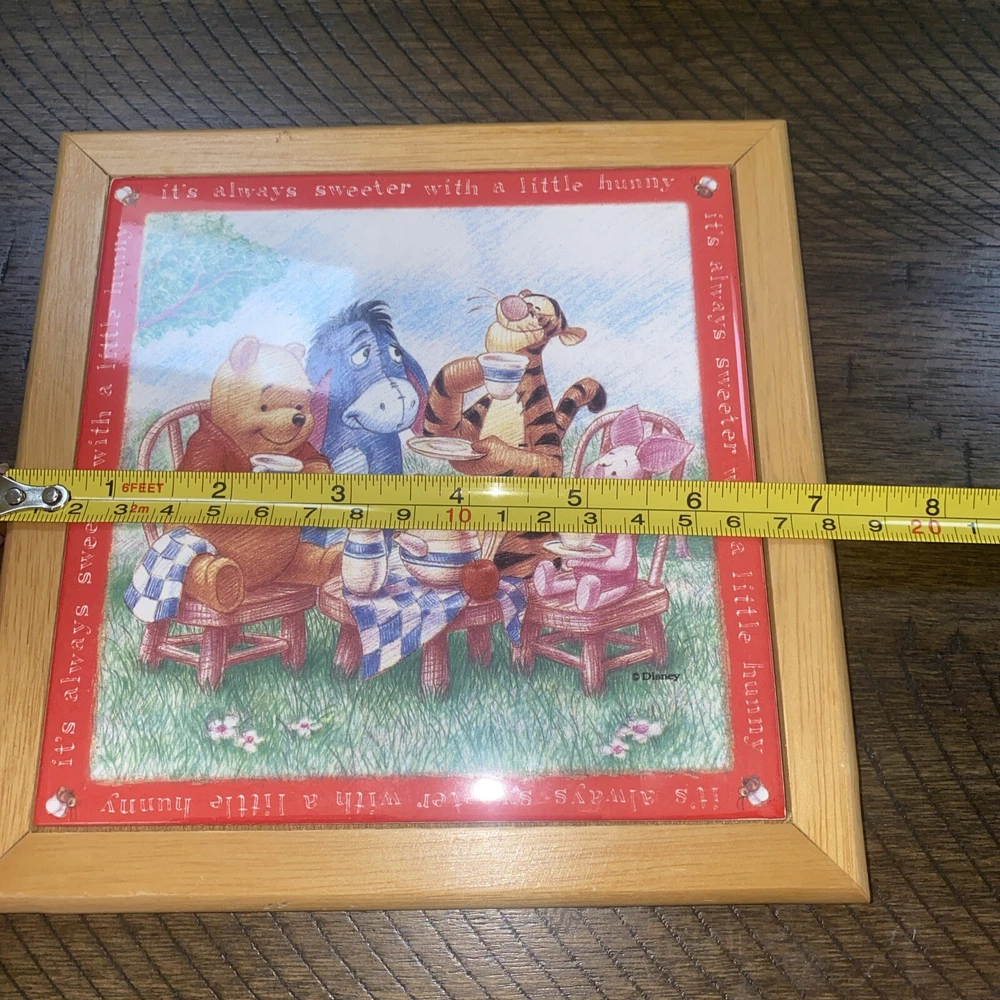 These collectible Winnie the Pooh and Friends and Piglet wall plaques or trivets feature beloved characters from Disney's Winnie the Pooh franchise, including Piglet, Pooh, Eeyore, and Tigger. Measuring at 7” by 7” these picnic Winnie the Pooh and Piglet art can be hung on the wall or used as trivets. They are a must-have for any Disney or Winnie the Pooh collector. Made in Taiwan, these pieces are a great addition to any collection and sure to bring joy to any fan. These are in good used condition. Any scuffs or marks are shown in photos.