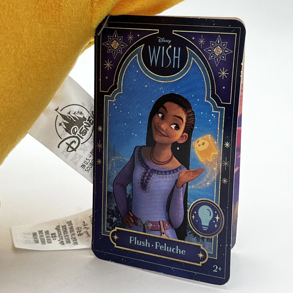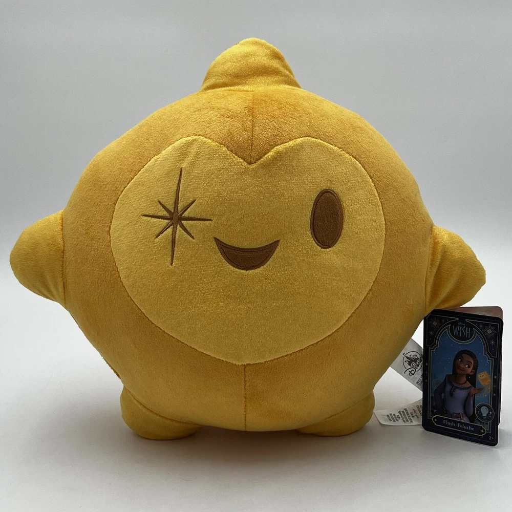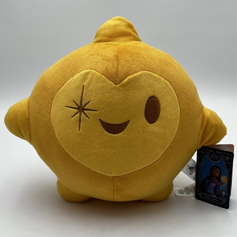 This delightful Disney Wish movie star plush cuddly buddy pillow is perfect for snuggling up with at bedtime. The 12-inch soft plush toy features a light-up star on its tummy that adds a magical touch to any room. The plush is brand new and comes with its original tag, making it a great addition to any Disneyana collection. The WISH STAR character/theme is from the Disney Wish franchise and is sure to delight fans of all ages. This contemporary plush toy is perfect for collectors or anyone who loves all things Disney. Bring home the magic of Disney with this adorable plush toy today!