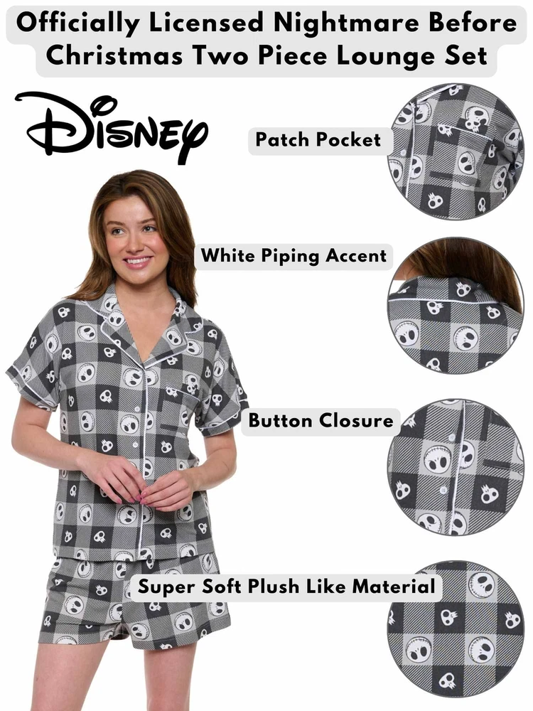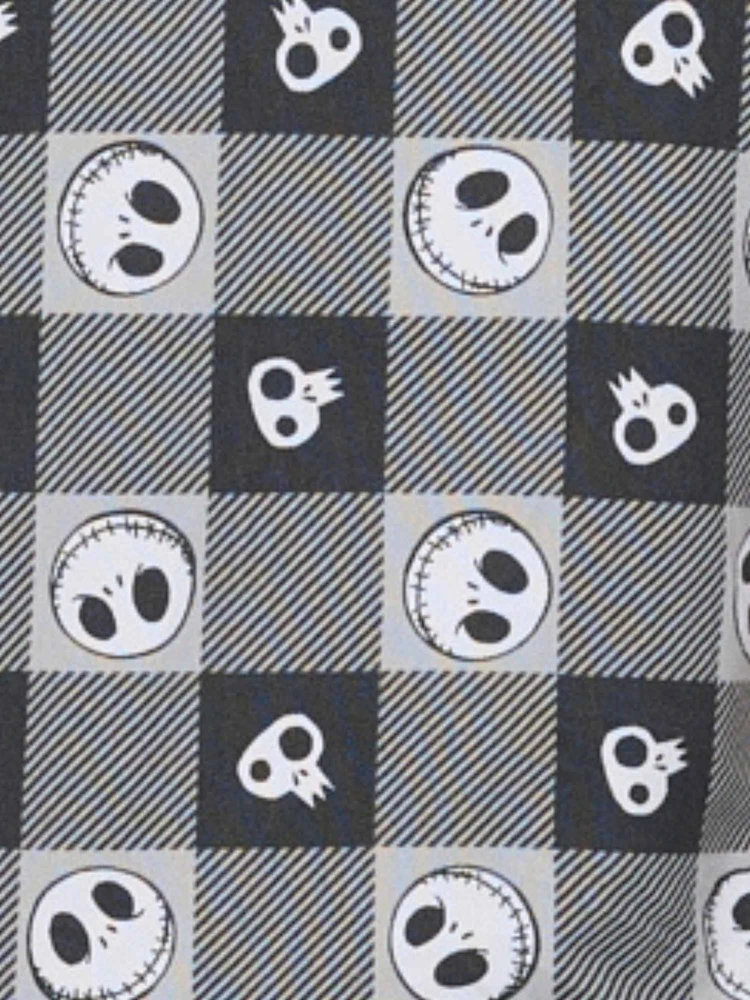 OFFICIALLY LICENSED | UNIQUE APPAREL AND ACCESSORIES | 100% AUTHENTIC | FREE STANDARD SHIPPING | HASSLE-FREE RETURNS HOME JUNIORS WOMEN PLUS SIZE MEN KIDS TOTE BAGS BACKPACKS DISNEY Disney Womens Jack Skellington 2 Piece Button Shirt and Short Pajama Lounge Set Product Details This officially licensed Jack Skellington sleep set is so soft and cozy! The Nightmare Before Christmas pajama shorts and button up top are lightweight and breathable for a comfortable yet stylish fit. This hacci knit pajama set is super soft with the right amount of stretch to keep you cozy and comfortable all night long. It makes a great gift for you or someone else! Also great for a matching pajama moment! Whatever the occasion, this pajama set will be the star of the show. This set features a white and black plaid background with an all over print of Jack Skellington's face with his classic smile. Perfect for all Nightmare Before Christmas lovers! Available in sizes small-extra large. Please refer to the size chart in the photos for more details regarding sizing. Disney Jack Skellington All-Over Print Womens T-Shirt and Hacci Shorts Set. Features an all-over print of Skellington. Relaxed fit, soft and comfy elastic waist. Poly spandex . Super soft fabric. Women's sizing. Shorts measures approximately (laid flat): Waist:. Inseam: Length (from waist): Machine Wash cold with similar colors, inside out. Only non-chlorine bleach when needed. Tumble dry low, remove promptly. Low iron if need. No not iron decoration. Officially Licensed Disney apparel! Brand Disney Color Black Material Polyester Style Lounge Pants, Sleep Shorts Height Length Width WS24SS143-S CLICK HERE TO BROWSE ALL OUR ITEMS OR SHOP BY CATEGORY BELOW: MEN SHOP NOW WOMEN SHOP NOW PLUS SIZE SHOP NOW KIDS SHOP NOW BAGS & ACCESSORIES SHOP NOW SHOP BY BRANDS Quick Links Payment Details Shipping Details Returns About Us Contact Us Store Home Add to Favorites New Arrivals Ending Soon Feedback Payment Options Secure Payments by Store Newsletter Add Store to your Favorites and receive email newsletters about new items and special promotions! Sign Up Now Copyright © Open and Clothing