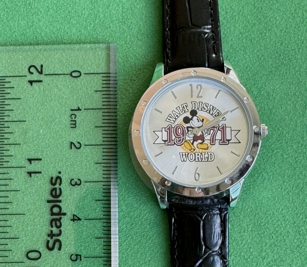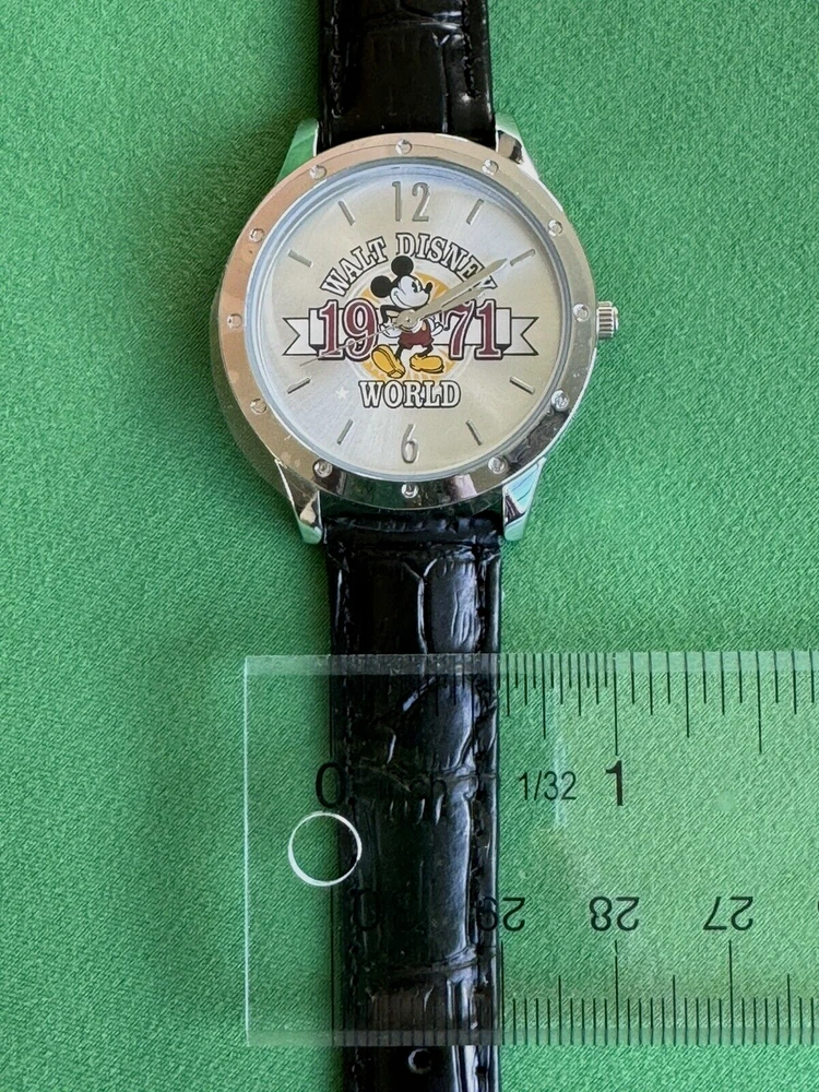 This Walt Disney World Limited Time Release Silver Tone Watch Mickey Mouse 1971 is in New Condition! Old Stock! The Watch Comes with Original Ban and Case . Great for Mickey Mouse Fan or Collector! Tested and Keeps Time. Ready to Collect, Gift or Wear. Recommend Replacing Band to Save the Original if You Want to Wear it Every Day. Measurements: Dial is 1" Wide, Watch Case is 1,25" Wide, Length of Band is 7.5". Adult Size. For Men and Women's Wrist. Please See Pictures Before Purchase. If Any Questions, Feel Free to Contact Us. Thank You.
