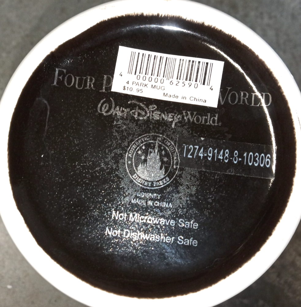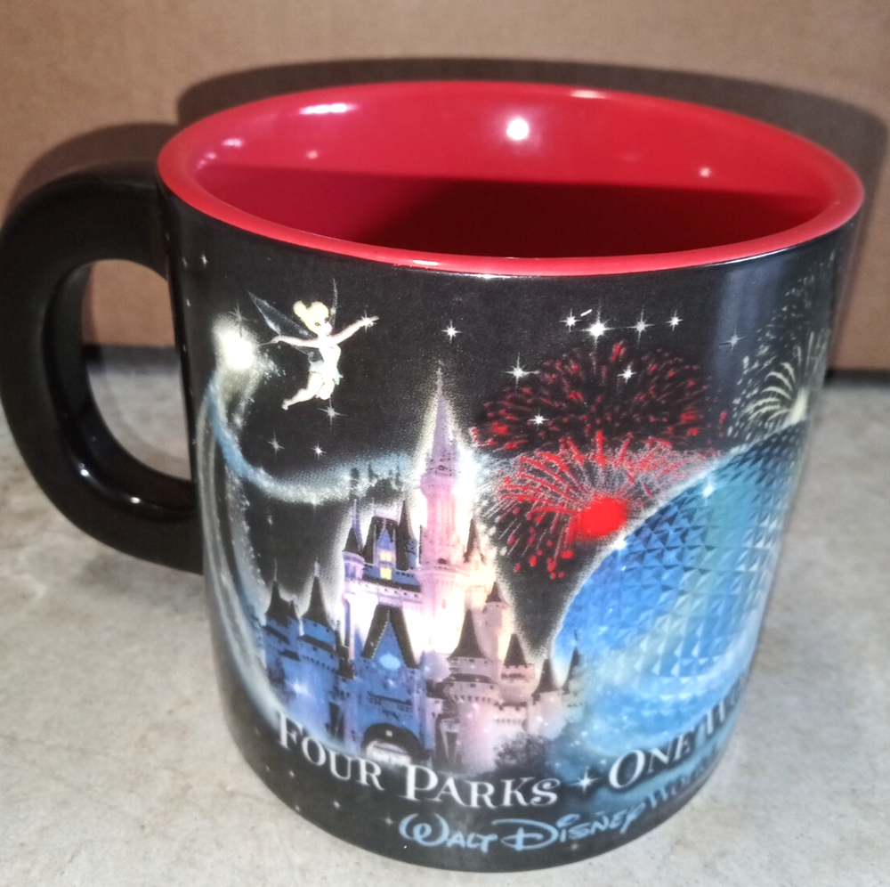 Disney Four Parks One World Coffee Mug.\ Measures 4" Height and 3 3/4" across top. Not dishwasher or Microwave safe