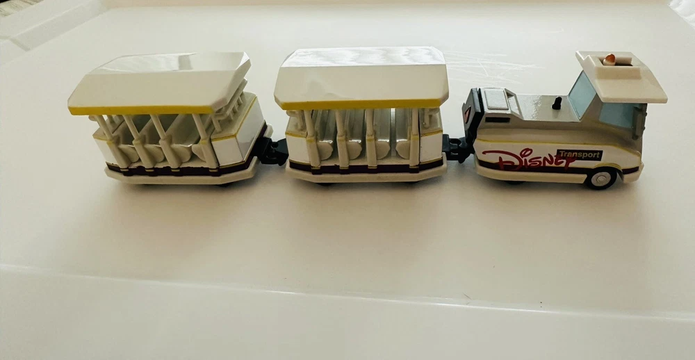 This 3-piece die-cast metal set features parking lot tram shuttle transport cars from Disney World. The cars are intricately designed with the iconic Disney theme and are perfect for collectors of Disneyana. The set includes cars from the Transport Toll Cars franchise and is a great addition to any collection. The cars are in excellent shape and ready for display or play.