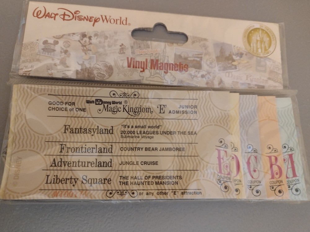 Authentic Walt Disney World replica original coupon magnets- Class A B C D E.