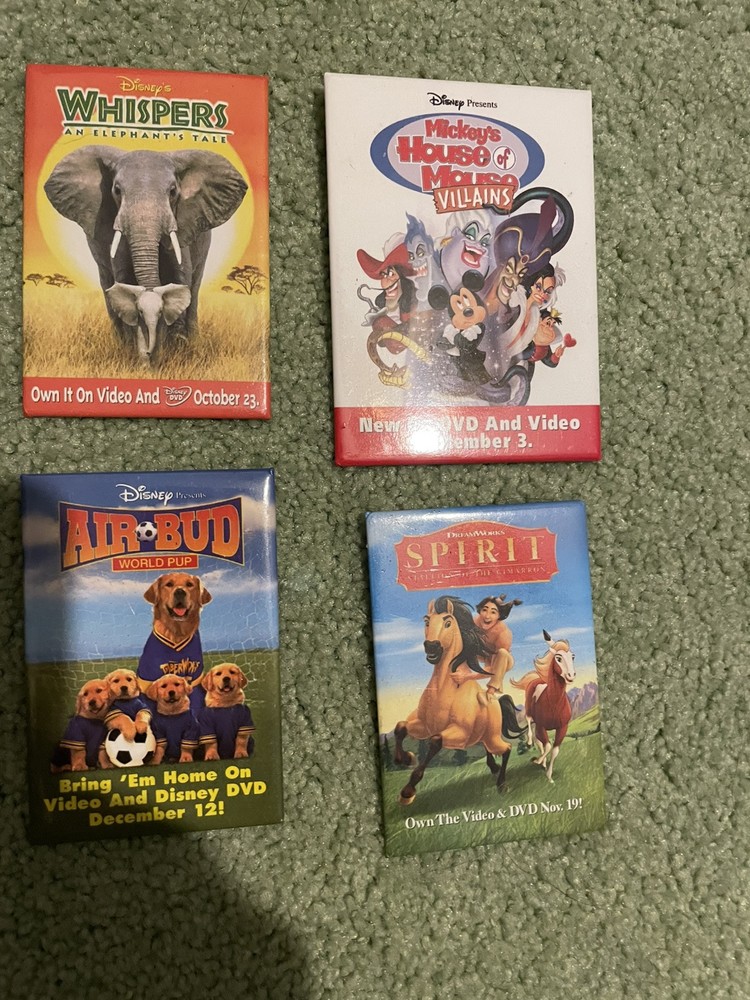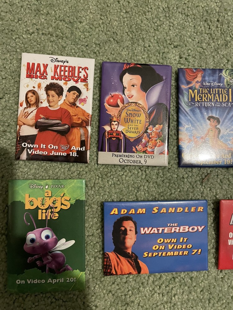The product is a set of 11 Disney promotional pins featuring Disney branding and franchise. The pins are likely collectible items from the Contemporary era (1968-Now) and fall under the Disneyana category. Lot includes: Spirit, Air Bud, Inspector Gadget, Waterboy, A Bugs Life, Snow White, Little Mermaid 2, Pinocchio, Whispers, Mickeys House of Mouse Villains, Max Keebles