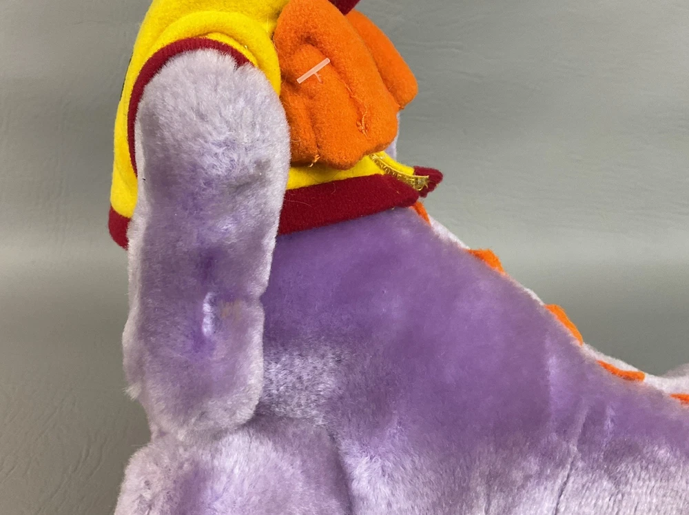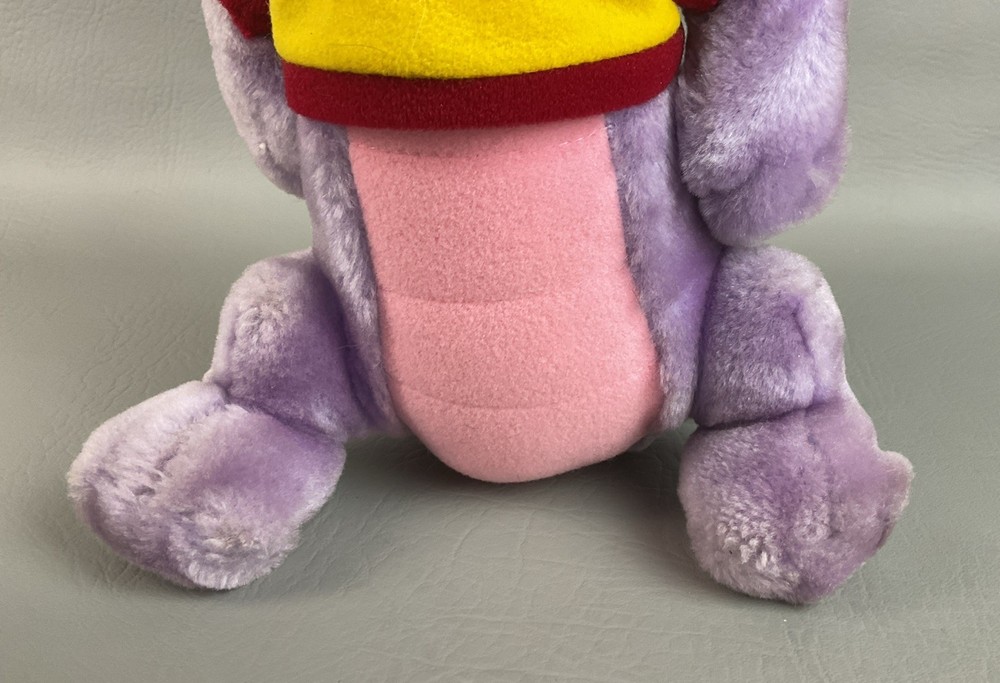 This Disneyland Figment Purple Dragon Plush is a vintage item from the 1980s, measuring 10 inches in size. It features the beloved character Figment, who is part of the Disney franchise. The plush toy has not been modified and is in great condition for its age, making it a perfect collectible for Disney fans and collectors of plush toys. The plush toy was manufactured in contemporary times, specifically in 1982, and is a part of the Disneyana collectibles category. This item is perfect for those who love Disney and want to add a unique and rare piece to their collection. Get your hands on this vintage Disneyland Figment Purple Dragon Plush today!