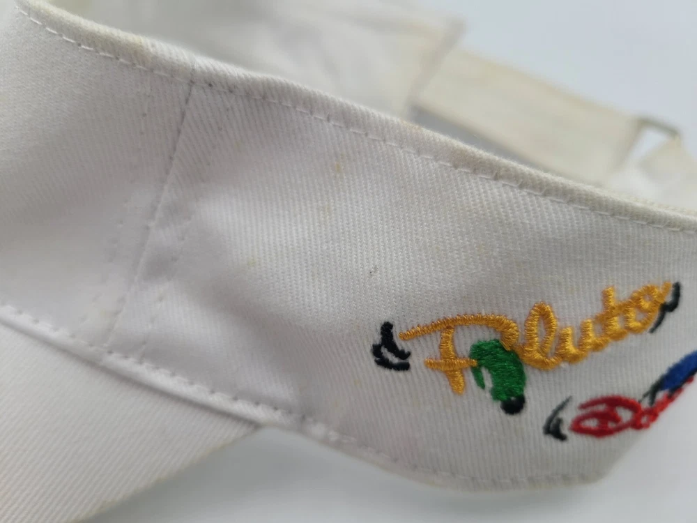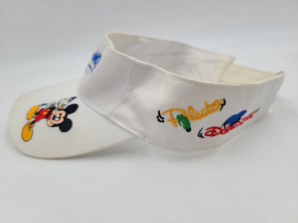 Has some stains/discoloration on the brim, side, and underneath the brim as seen in photos. Youth Mickey Mouse Pluto Donald Minnie Goofy Disneyland Visor Adjustable Hat Cap. EACH ADDITIONAL HAT PURCHASED IS ONLY $1 ADDED SHIPPING!