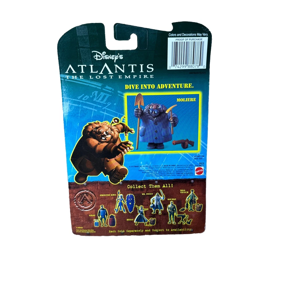 Material: Plastic gtin13: Does not apply Type: Action Figure Original/Licensed Reproduction: Original Franchise: Disney UPC: Does not apply Sport: NA MPN: 29323 Vintage: Yes Character: Moliere Featured Person/Artist: Sparks Time Period Manufactured: 2000-2009 Year Manufactured: 2000 TV Show: Atlantis Theme: Movies Scale: 1:18 Movie: Atlantis The Lost Empire Convention/Event: NA Brand: Mattel
