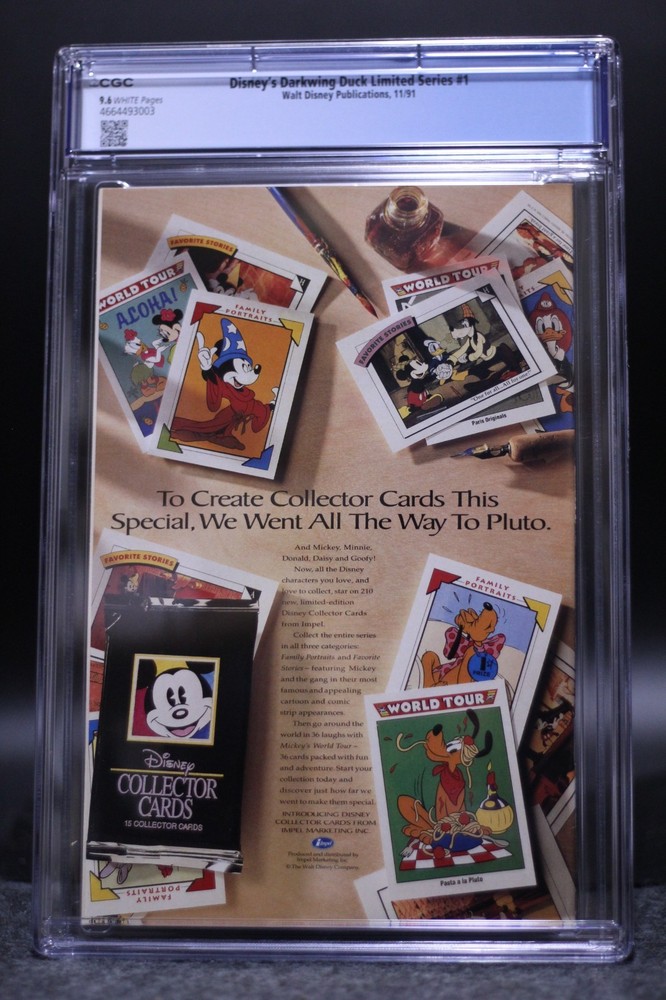 Link to our BEST items!! Link to our ENDING items!! Link to our FAQ page !! Link to our NEWEST items!! Item: Disney's Darkwing Duck Limited Series (1991) #1 CGC 9.6 White Pages John Moore Special Notes: This issue is a First Printing! We do not use stock photos! What you see in the pictures is what you will be getting. Publication Date: Nov 1991 (The date in the title refers to the year the title started) Writer : John Blair Moore Interior Artist: John Blair Moore Cover Artist: John Blair Moore Condition: CGC 9.6 Near Mint + Page Quality: White Pages Bar Code: 4664493003 SHIPPING: All pricing is based on the weight of the package and your location. Package Weight: 3 lb[s] Package Size: 14x12x6 We charge exact shipping costs per USPS with NO handling charge. You can check our shipping quotes on the USPS website. For the convenience of the winner, we offer shipment via Priority Mail or Media Mail, when shipping to an address inside the USA. For International Winners, we offer Priority Mail International or First-Class International Mail. Please click on the "SHIPMENTS and PAYMENTS" tab above for more details. * FREE Insurance, for items totaling under $100.00, is only available when shipping with USPS Priority to an address within in the USA! All packages will have a tracking number sent to the winner! Shipping & Payment Terms: If you would like to have your item insured, please contact us and we will send you an invoice with the adjusted shipping charges. We will be happy to combine the shipping charge for multiple auction wins . If you win a single item, you do not have to wait for an invoice to make your payment. IF YOU WIN MULTIPLE AUCTIONS, PLEASE WAIT UNTIL WE SEND YOU A COMBINED INVOICE BEFORE PAYING FOR YOUR ITEMS. Please DO NOT pay for items separately. We will ship your items within 2 business days upon receiving your payment. Payment Options: PayPal is the preferred method of payment per eBay's policies. If you do not have a PayPal account, we do accept credit card payments over the phone. Payment MUST be received within 7 business days of the auction ending or your bid will be cancelled and eBay will be contacted. Questions: We will be happy to answer any questions you have about our items before the auction ends. Please ask your questions as early as possible so we have plenty of time to answer them. Return Policy: All returns MUST be approved by Duncanville Bookstore. If there is a problem with your order, please give us a chance to address the issue before you leave negative feedback and/or contact PayPal for a refund. Store Info: Please check our other auctions and our eBay store for more great deals!! Check out our info page for more great ways to get in touch with us. Also, feel free to contact us if you are looking for anything in particular or you are looking to sell your items. We are always buying!! Duncanville Bookstore is open 7 Days a Week 10am-7pm CST!!