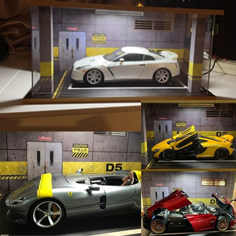 Display Case for 1/18 Diecast Cars,Acrylic Display Case for 1/12 Scale Toy Motorcyle with LED lighting,D5-3 open side Description: Features: Perfect Way to Display and Photograph This display case can fit in 1:18 scale diecast cars, 1:12 scale die-cast motorcycle. With this display box, you can highlight your favorite collectibles and take photos of them. DimensionExterior size:14.1" X 8.2" X 7". Parking space size: 9.8" X 5.9" X 6.3"(25cmL*15cmW*16cmH). Note: model cars are not included in this display case. Lighted Display CaseBuilt-in LED lights on the ceiling can light up the entire scene and increase the atmosphere of the scene. Realistic Garage SceneThe picture for back panel and ceiling are pringted by UV laser. The parking scene is clear , delicate and more realistic. And the clear display case is made of high transparency acrylic, in order to show your favorite models more clearer. Each acrylic panel is double sides wrapped to prevent damage during shipping Easy and Fun AssemblyThe small display case requires simple assemble.An instruction will come with the display box for guidance.In just a few minutes, you can create a parking scene for your car and have fun. Product Details: Color: Grey Brand: Gemutlich Product Dimensions: 14.1"L x 8.2"W x 7"H Frame Material: Acrylic Frame Size: 14.1 inches Shape: Rectangular Manufacturer: Gemutlich UPC: 763722105742 Product Dimensions: 14.1 x 8.2 x 7 inches Item Weight: 4.31 pounds Item model number Manufacturer recommended age: 14 years and up On Nov 20, 2024 at 20:59:18 PST, seller added the following information: