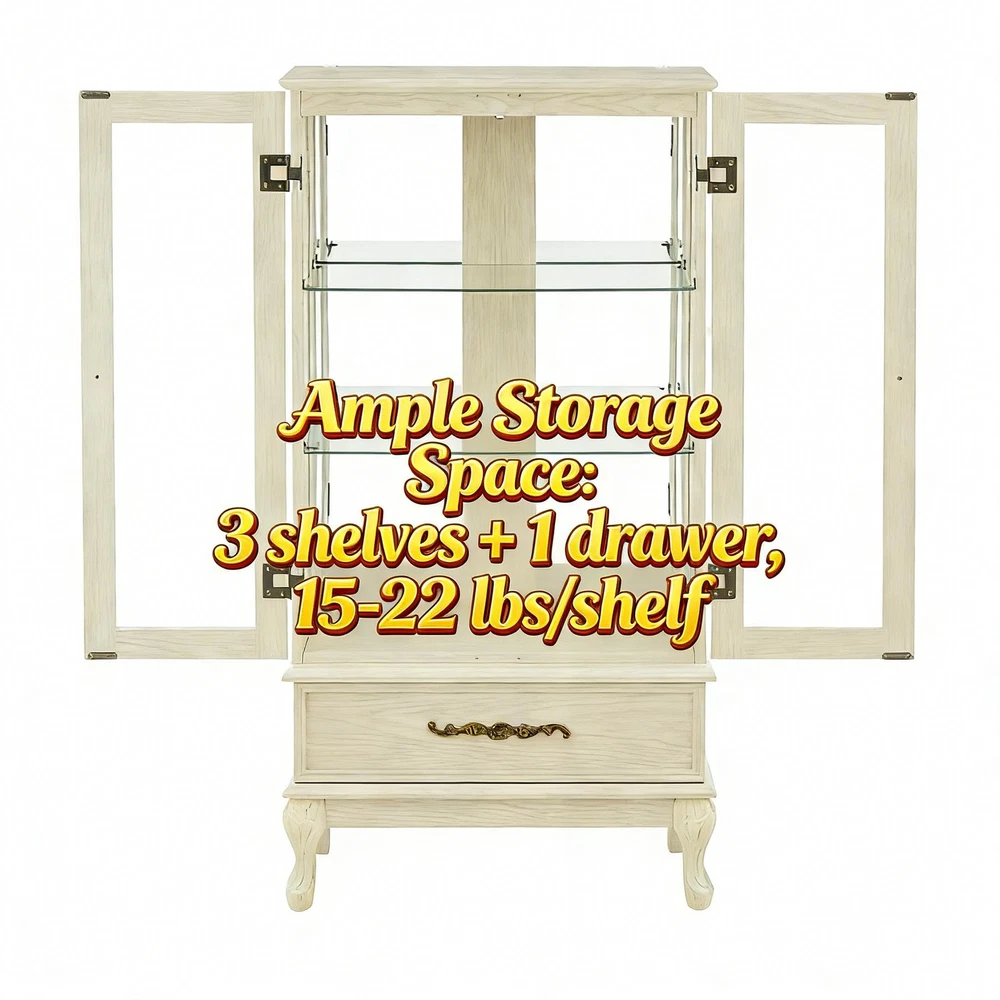 Curio Cabinet eBay Product Descriptions 1. Lighted Curio Cabinet - Dark Cherry Finish Product Name: Curio Cabinet Lighted Glass Cabinet Glass Wine Cabinet Curio Display Cabinet with Adjustable Glass Shelves 2 Doors and 1 drawer Cabinet Sideboard With Bulb Included Dark Cherry Key Features & Highlights: Elegant & Sophisticated Aesthetic: Adds a touch of luxury to any living room, dining room, or entryway, seamlessly blending with various home decor styles. Illuminated Display System: Included bulb lights up your collectibles, wines, or treasures, creating a captivating visual focal point. Ample & Versatile Storage: Features 2 glass doors, 3 partitions, and a spacious drawer, providing abundant space for display and organized storage. Adjustable Glass Shelves: Customize the interior layout according to the size and height of your items, maximizing storage flexibility. Premium Material: Crafted from high-quality MDF and glass, ensuring durability and long-lasting use. Specifications: Color: Dark Cherry Material: MDF + Glass Assembled Dimensions: 25.98"W x 11.81"D x 51.58"H (inches) Product Weight: 69.30 lbs Package Dimensions: 40.16"L x 15.95"W x 13.00"H (inches) Package Weight: 78.10 lbs Assembly Note: Before assembling the backplane, please tear off the film on the backplane first. Warranty & Return Policy: 1-Year Quality Warranty | 30-Day Free Return & Exchange (No-Hassle, Full Refund if Unsatisfied) Transform your home decor and showcase your precious items in style with this elegant lighted curio cabinet. Perfect for displaying collectibles, wines, figurines, and more! 2. Lighted Curio Cabinet - Light Oak Finish Product Name: Curio Cabinet Lighted Glass Cabinet Glass Wine Cabinet Curio Display Cabinet with Adjustable Glass Shelves 2 Doors and 1 drawer Cabinet Sideboard With Bulb Included Light oak Key Features & Highlights: Elegant & Sophisticated Design: Brings a warm, luxurious touch to any space, complementing both traditional and modern home decors. Illuminated Display: Built-in lighting system (bulb included) highlights your displayed items, creating a stunning visual effect that draws attention. Multiple Storage Options: Equipped with 2 glass doors, 3 partitions, and a large drawer, offering ample space for display and storage needs. Adjustable Shelves: Movable glass shelves allow you to tailor the storage space to fit items of different sizes and heights, enhancing usability. Durable Construction: Made of high-grade MDF and glass, ensuring sturdiness and long-term reliability. Specifications: Color: Light Oak Material: MDF + Glass Assembled Dimensions: 25.98"W x 11.81"D x 51.58"H (inches) Product Weight: 69.30 lbs Package Dimensions: 40.16"L x 15.95"W x 13.00"H (inches) Package Weight: 78.10 lbs Assembly Note: Before assembling the backplane, please tear off the film on the backplane first. Warranty & Return Policy: 1-Year Quality Warranty | 30-Day Free Return & Exchange (No-Hassle, Full Refund if Unsatisfied) Elevate your home display with this stylish light oak curio cabinet. Ideal for showcasing wines, collectibles, family heirlooms, and other precious items! 3. Lighted Curio Cabinet - Antique White Finish Product Name: Curio Cabinet Lighted Glass Cabinet Glass Wine Cabinet Curio Display Cabinet with Adjustable Glass Shelves 2 Doors and 1 drawer Cabinet Sideboard With Bulb Included Antique White Key Features & Highlights: Elegant & Timeless Style: Antique white finish adds a touch of sophistication and charm to any home, perfect for vintage or shabby-chic decor themes. Illuminated Showcase: Included bulb lights up your displayed items, making them stand out and creating a cozy, inviting atmosphere. Spacious Storage: 2 glass doors, 3 partitions, and a roomy drawer provide versatile storage space for collectibles, wines, and more. Customizable Shelves: Adjustable glass shelves let you modify the interior to fit items of various sizes, ensuring maximum storage efficiency. Sturdy Build: Constructed from high-quality MDF and glass, guaranteeing durability and long-term use. Specifications: Color: Antique White Material: MDF + Glass Assembled Dimensions: 25.98"W x 11.81"D x 51.58"H (inches) Product Weight: 69.30 lbs Package Dimensions: 40.16"L x 15.95"W x 13.00"H (inches) Package Weight: 78.10 lbs Assembly Note: Before assembling the backplane, please tear off the film on the backplane first. Warranty & Return Policy: 1-Year Quality Warranty | 30-Day Free Return & Exchange (No-Hassle, Full Refund if Unsatisfied) Add a touch of vintage elegance to your home with this antique white lighted curio cabinet. Perfect for displaying your most cherished items in style! 4. Lighted Curio Cabinet - Light Black Finish (With LED Lights) Product Name: Lighted Curio Cabinet with Glass Doors and Adjustable Shelves 2 Door Wine Cabinet Display Curio Cabinet with LED Lights Light Black Finish and Drawer for Home Decor and Storage Key Features & Highlights: Sleek Elegant Design: Light black finish with beautifully curved table legs and stylish metal drawer handles enhances the aesthetic of any room, offering a modern and sophisticated display solution. LED Illuminated Display: Built-in LED lights (energy-efficient and long-lasting) highlight your collectibles, wines, or treasures, creating a striking visual effect. Ample Multifunctional Storage: Features 3 shelves (1 fixed wooden shelf + 2 adjustable tempered glass shelves) and a generous drawer, providing abundant storage space. Each glass shelf can hold 15-22 lbs. Elegant Mirrored Back Panel: Enhances the visibility of your cherished items and adds an extra touch of sophistication to your home decor, making your display more eye-catching. Easy Installation: Hassle-free assembly with clear, straightforward instructions. Perfect size for various spaces without overwhelming your decor. Durable Material: Crafted from high-quality MDF and glass, ensuring sturdiness and durability for long-term use. Specifications: Origin: China Color: Light Black Material
