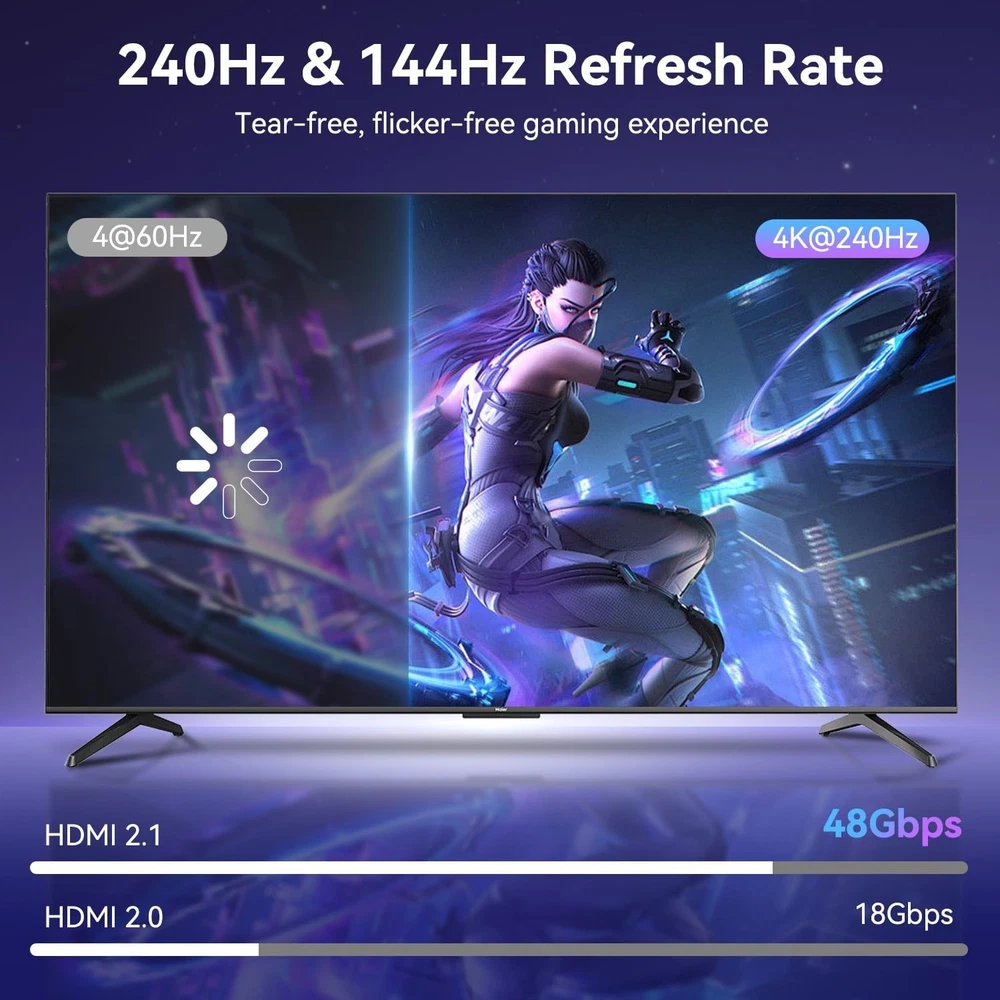 DisplayPort 1.4 to HDMI 2.1 Cable - 6ft, Ideal for Gaming & Entertainment ‹ › ‹ › ‹ › ‹ › ‹ › ‹ › ‹ › ‹ › ‹ › DisplayPort 1.4 to HDMI 2.1 Cable - 6ft Ideal for Gaming & Entertainment Stunning 8K Ultra HD Experience breathtaking visuals with this cutting-edge DisplayPort 1.4 to HDMI 2.1 cable, designed for the ultimate gaming and entertainment experience. It supports resolutions up to: 8K (7680x4320)@60Hz 4K (3840x2160)@240Hz/165Hz/144Hz/120Hz/60Hz 2K (2560x1440)@165Hz/144Hz/120Hz 1080p@165Hz/144Hz/120Hz Every frame is displayed with stunning clarity, processing each signal source flawlessly. The cable also supports Dynamic HDR and DSC 1.2 , ensuring compatibility with HDCP 2.3 for enhanced content protection. Immersive Audio-Visuals Dive into immersive surround sound and vibrant HDR visuals. With a refresh rate of 4K@240Hz , this cable eradicates lag and frame drops, perfect for video playback, FPS gaming, and AAA titles. The enhanced audio signal control provided by eARC adds another layer of sophistication to your entertainment experience. Reinforced Material - Anti-Interference Design Crafted with a smart chip and 30AWG copper core, this cable features multi-layer shielding that guarantees stable signal transmission. Say goodbye to screen tearing, ghosting, and audio/video desynchronization. The non-locking plug design protects your devices during insertion and removal, while the one-piece aluminum alloy housing and 24K gold-plated connectors ensure durability and a reliable connection. Plug and Play - Hassle-Free Convenience With fully plug-and-play functionality, there are no drivers required—saving you time and enabling swift DisplayPort to HDMI conversion. Compatible with popular monitor brands like BenQ, Dell, HP, Acer, Alienware, and Samsung, it works perfectly with all DP, DP++, and DisplayPort++ supported GPUs. Note: Not compatible with hubs, docking stations, or KVM switches—only supports direct connections from DisplayPort source devices to HDMI display devices. 18 Your satisfaction is our priority. Enjoy peace of mind with the exclusive 18- , and experience friendly and accessible customer service ready to assist you with any inquiries or issues. Elevate your audio-visual experience with the ultimate DisplayPort to HDMI cable—order yours today! Shipping Free & Fast Shipping - We offer free shipping to most of the USA with a normal delivery time of 3-7 days. However, due to the current situation, additional delivery time (up to 3 weeks) may be required for some items. Alternative Carriers - We may use alternative carriers (e.g. USPS, FedEx, UPS, etc.) to ensure your package arrives safely and on time. Due to the use of multiple carriers, we are unable to provide a tracking number automatically. Handling Time - Orders are processed and shipped within 1-2 business days of receiving cleared payment. Shipping Restrictions - Shipping to Alaska, Hawaii, Puerto Rico, Guam, and other US territories may incur shipping charges or delivery restrictions. Please contact us before ordering, or your order can be refunded/cancelled. State Restrictions - There may be restrictions based on your state of purchase. For example, certain items may not be shipped to California due to state regulations. Contact for Tracking Updates - If you require tracking updates or have any concerns about the delivery of your order, please feel free to contact us, and we will be happy to assist you. Return 30-Day Hassle-Free Returns - We want you to be completely satisfied with your purchase. If you are not, you can return the item within 30 days of receiving it for a full refund or exchange. Easy Return Process - To start a return, simply contact us and we will provide you with a prepaid return shipping label and detailed instructions. Restocking Fee - There are no restocking fees for returns. However, the buyer is responsible for return shipping costs if the return is not due to a seller's error. Refund Processing Time - Refunds will be processed within 5 business days of receiving the returned item in its condition. Payment We accept all major credit cards, PayPal, and Apple Pay for your convenience. Your payment information is secure and encrypted to ensure a safe and seamless transaction. Please complete your payment within 3 days of purchase to avoid any delays in shipping. Feedback Your feedback is extremely important to us. We strive to provide the best products and customer service possible. If you are satisfied with your purchase, please take a moment to leave us a positive review. If you have any concerns or issues with your order, please contact us before leaving negative feedback. We are committed to resolving any problems and ensuring your satisfaction. Contact Us If you have any questions or concerns, please feel free to out to our customer support team. You can contact us through the eBay messaging system. We are available Monday to Friday, 9:00 am to 5:00 pm EST, and we will do our best to respond to your inquiry within 24 hours. Buy it now and enjoy a pleasant shopping experience! Type: Details In Description
