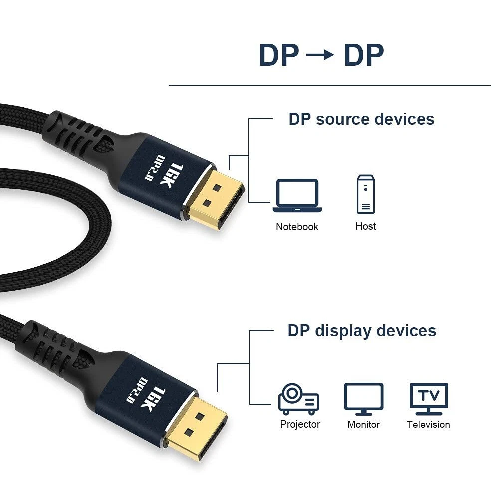 eBay Product Listing Welcome to Your Favorite My Store Your satisfaction is our top priority – Shop confidently 2m DisplayPort 2.0 DP to DP Cable 16K 60hz Cable Ultra-HD UHD DP 1.4 8K 121hz for PC Laptop HDTV Item Gallery Item Description 2m DisplayPort 2.0 DP to DP Cable 16K 60hz Cable Ultra-HD UHD DP 1.4 8K 120hz for PC Laptop TV support 16K @ 60Hz, 8K @ 120Hz, UHD, HDR Provides high-definition video transmission experience and 3D visual effects, audio and video simultaneous transmission. High-speed bandwidth reaches 80Gbps, DisplayPort 8K Cooper cable, bandwidth reaches 80Gbps, high-speed transmission without signal loss. Support single,dual,triple displays mode. Single display resolutions: 1) One 16K (15360x8640) display @60hz and 30 bpp 4:4:4 HDR(with DSC) 2) One 10K (10240x4320) display @60hz and 24 bpp 4:4:4 (no compression) Dual display resolutions: 1) Two 8K (7680x4320) display @120hz and 30 bpp 4:4:4 HDR(with DSC) 2) Two 4K (3840x2160) display @144hz and 24 bpp 4:4:4 (no compression) Triple display resolutions: 1) Three 10K (7680x4320) display @60hz and 30 bpp 4:4:4 HDR(with DSC) 2) Three 4K (3840x2160) display @90hz and 24 bpp 4:4:4 (no compression) When using only two lanes on the USB-C connector via DP Alt mode tp allow for simultaneous super speed can enable such configurations as: 1) Three 4K (3840x2160) display @144hz and 30 bpp 4:4:4 HDR(with DSC) 2) Two 4Kx4K (4096X4096) displays (for AR/VR headsets) @120hz and 30 bpp 4:4:4 HDR(with DSC) 3) Three QHD (2560x1440) @120hz and 24 bpp 4:4:4 (no compression) 4) One 8K (7680x4320) @30hz and 30 bpp 4:4:4 HDR(no compression) Special Features 2m DisplayPort 2.0 DP to DP Cable 16K 60hz Cable Ultra-HD UHD DP 1.4 8K 120hz for PC Laptop TV DisplayPort copper cable, DisplayPort 2.0 cable, support 16K high resolution 60hz support 16K @ 60Hz, 8K @ 120Hz, UHD, HDR Provides high-definition video transmission experience and 3D visual effects, audio and video simultaneous transmission. High-speed bandwidth reaches 80Gbps, DisplayPort 8K Cooper cable, bandwidth reaches 80Gbps, high-speed transmission without signal loss. Support single,dual,triple displays mode. Single display resolutions: 1) One 16K (15360x8640) display @60hz and 30 bpp 4:4:4 HDR(with DSC) 2) One 10K (10240x4320) display @60hz and 24 bpp 4:4:4 (no compression) Dual display resolutions: 1) Two 8K (7680x4320) display @120hz and 30 bpp 4:4:4 HDR(with DSC) 2) Two 4K (3840x2160) display @144hz and 24 bpp 4:4:4 (no compression) Triple display resolutions: 1) Three 10K (7680x4320) display @60hz and 30 bpp 4:4:4 HDR(with DSC) 2) Three 4K (3840x2160) display @90hz and 24 bpp 4:4:4 (no compression) When using only two lanes on the USB-C connector via DP Alt mode tp allow for simultaneous super speed can enable such configurations as: 1) Three 4K (3840x2160) display @144hz and 30 bpp 4:4:4 HDR(with DSC) 2) Two 4Kx4K (4096X4096) displays (for AR/VR headsets) @120hz and 30 bpp 4:4:4 HDR(with DSC) 3) Three QHD (2560x1440) @120hz and 24 bpp 4:4:4 (no compression) 4) One 8K (7680x4320) @30hz and 30 bpp 4:4:4 HDR(no compression) Our Guarantee To You We offer fast shipping, free delivery, and 100% customer satisfaction guarantee. Not satisfied? Return your item for free within 30 days. 30-Day Free Returns Shipping Details Items will be sent to your eBay address. Please verify before purchasing. Typical delivery within 3-7 business days. Professional shipping services used for all orders. We ship to the continental US (48 states only). Unable to deliver to Alaska, Hawaii, or territories. No APO/FPO or PO Box deliveries available. We use eco-friendly packaging Payment Options We accept these secure payment methods: All transactions securely processed through eBay's payment system. Simple Returns 30-Day Satisfaction Promise Contact us through eBay messages within 30 days of delivery. We'll provide return instructions and our address. Return the item in its original condition. We'll process your refund within 48 hours of receiving the item. Get In Touch Have questions about your order? Contact us through eBay messaging for prompt assistance. We typically respond within 24 hours.