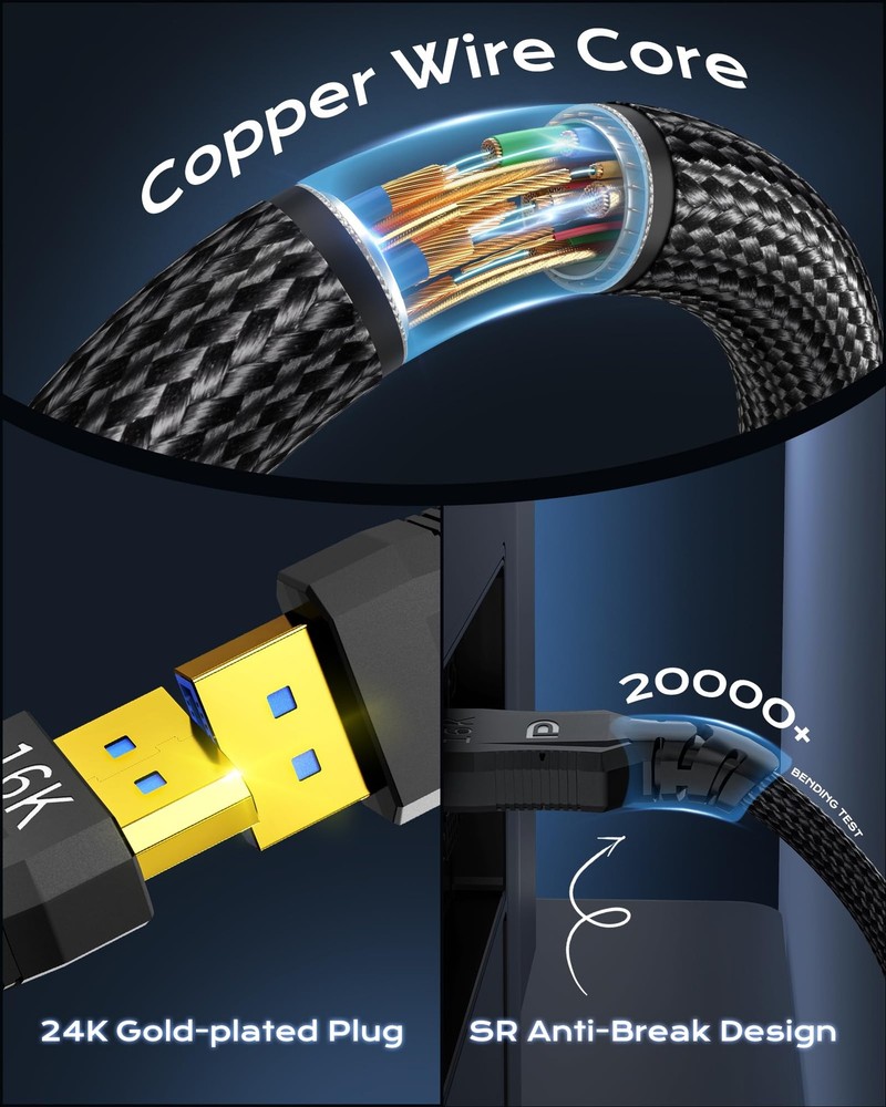 DisplayPort 2.1 cable 3.3FT -16K DP To DP Braided Cord-Support 40Gbps,16K 30Hz,8K1 20Hz,4K 240Hz /165Hz /144Hz - Compatible FreeSync/G-Sync/ Gaming Monitor,HDTV,PC VESA Certified:A VESA Certified DisplayPort To DisplayPort 2.1 Cable 3 Feet.Compatible with performance graphics cards to prevent tearing and ghosting caused by rapid screen transitions during gaming, making the game more stable.Downward compatible with display ports cable 2.0/1.4/1.2 Quality Improvement:Upgraded and thickened copper wire core, 24k gold-plated plug, and multiple shielding such as aluminum foil, ground wire, and Al-MgWire Mesh. Double anti-interference and more stable transmission. Nylon Braided makes the cable more strong The Ultimate And Delicate Experience:16K ultra high definition (15360 * 8460 resolution), high refresh rate. Supports 16K/30Hz, 8K/120Hz, 4K/240Hz (DSC), 2K/240Hz,effortlessly meeting the high refresh rate requirements of games, reducing motion blur. The picture quality is delicate and realistic, igniting the passion of esports and allowing you to immerse yourself in a more realistic gaming world Throughout Life and Office:Applicable to DP port, supports dynamic HDR, 3D, HDCP 2.3,16bit Color Depth, Audio Channel Max.Throughout High definition games,audio visual synchronization,retouching and editing,conference Office After-sale Service:strives to serve every customer well. If you have any questions or opinions about 16K DisplayPort to DisplayPort cord.Our customer service will reply to you within 12 hours