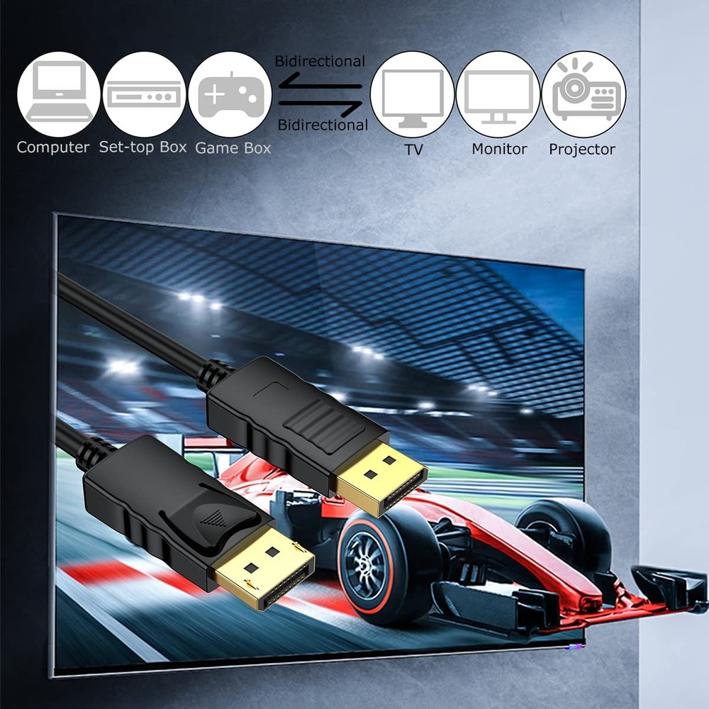 Display Port Cables 3FT 【High Resolution 4K@60Hz】Our DisplayPort Cable supports refresh-rate up to 165Hz under 2K (2560*1440) resolution and UHD 4K (3840x2160@60Hz) Streaming allows you to configure your 4K monitor 【High Speed DP Cable 3 FT】The DP cable 3 Feet support 21.6 Gbps high-speed transfer,HBR2 rated; Supports FreeSync and G-Sync technology, 8-bit &10-bit deep colors and sharp images;Compatible with Audio Return Channel (ARC), 3D Surround, Digital 7.1, 5.1 channels, DTS-HD, and Dolby audio 【High Quality】Gold-plated connectors, bare copper conductors, foil & braid shielding combine together to provide both superior cable performance and reliable connectivity 【No Flicker Experience】The Displayport 1.2 cable transmits HD audio and video from your computer to a monitor for video streaming or gaming; 2K@165Hz refresh rate reduces flicker to give you a really comfortable gaming experience, No motion blur, screen tearing or flickering 【Reliable After-Sales】We provide reliable after-sales service for 2 years. If you have any questions, please contact us and we will respond within 24 hours