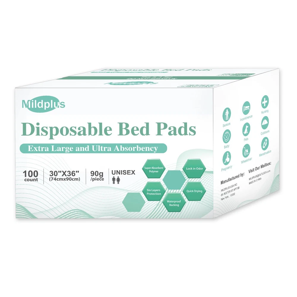 Description is dedicated to provide you with professional and comfortable service. If you have any additional comments and suggestions for the product, or if you need something more unique, please let us know. We will develop a product that suits your needs. Cost Effective: New Compressed Packaging. 100 Pcs/Box. Each pad weighs 90g (7g SAP), which can hold 1500ml of liquid easily. Heavy Absorbency: Disposable Bed Pads in Size 30"X36" (about 75cm * 90cm) can protect the surface in all directions and absorb in plenty of liquid quickly. Without Adhesive: In order to meet the needs of more customers, the 30"X36" (100 COUNT) disposable underpads has no adhesive. Please purchase as needed. Soft and Breathable: The Rhombus shaped Non-Woven Surface Layer protects your skin to keep it dry and breathable. You can enjoy every perfect night. Multipurpose: disposable underpads are suitable for people of all genders and ages, and can be used in a variety of occasions where you need it. It will bring you companionship, love and security.