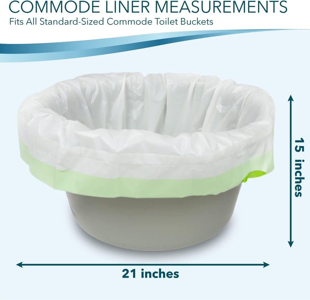 Disposable Bedside Commode Liners for Adult Portable Toilet Chair Seat Bucket and Bedpan | Value Pack of 48 Waste Bags | Universal Fit Liners for Home Medical Care No More Yuck: Now there's no more need to clean out liquid and solid waste from portable commode toilets and bedpans. Each plastic commode liner is simple to insert and they are universal in size. Simply remove the liner from the commode chair after use and tie the drawstring for a seal-tight closure, then dispose safely in the garbage. 100% Leak Free: No leaking, SATISFACTION GUARANTEEd. disposable commode bags keep everything tidy, sanitary, and hygienic while also saving time for care givers, the elderly and the bariatric. The commode disposable liners eliminate the need for cleaning or rinsing the commode bucket. Easy to Use: Our commode liners for bedside toilet chair bucket are designed for hassle-free use, especially by those who typically depend on using bedside commodes. This includes those in medical care, recovering from surgery, bariatric adults, seniors with early dementia, and other such conditions in which mobility is . Liners Only: This Value Pack comes with 48 commode liners. Each portable toilet liner fits standard-sized commode toilet buckets and are easily disposable. If you’re looking for absorbency, search for Convenience Pack, which comes with our bedpan liners along with super-absorbent commode pads. Cares: Our products such as the Bedside Commode Liners for Portable Toilet Chair Bucket and Bedpan are assembled at Sunshine Industries, a vocational training facility for people with intellectual & developmental disabilities. Your purchase helps these individuals to work in a safe, encouraging & fulfilling environment.