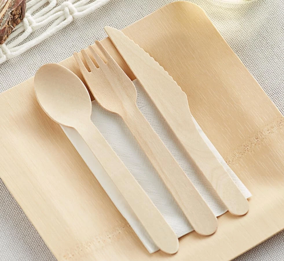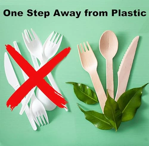 RECYCLABLE FLATWARE When it comes to setting your table, you should never have to settle for anything less than the best. And the best is exactly what you’ll get when you choose our wooden utensils set. SOPHISTICATED CUTLERY The chic and modern design of our disposable cutlery compostable set allows them to match all party decor and tableware sets. They’re ergonomic to fit comfortably in everyone’s hands and are perfect for use during a family picnic in the park! Display our disposable utensils set individually wrapped as an affordable finishing touch for a rustic farmhouse wedding reception, bridal shower, or birthday party. QUALITY MATERIALS We made sure that our compostable cutlery disposable is a great alternative to professional cutlery. Made from 100% natural birch wood, our disposable knife and fork and spoon are heavy duty. The eco friendly forks feature an improved tine design to effectively hold your next bite and the knives are expertly sharpened to easily slice through most foods. Furthermore, our recyclable spoons can be used in a hot soup unlike plastic alternatives ECO FRIENDLY PURPOSE We understand the need for preserving nature is at an all-time high and we want to do our part. Our eco friendly disposable utensils sets are single-use but they’re also completely recyclable, compostable, and biodegradable so you can use them and toss them without worrying about how long they’ll sit in a landfill. And for every set made. ASSORTED CUTLERY With every set containing 200 eco disposable forks, 200 disposable wooden spoons, 200 Disposable Knives and 200 disposable Napkins , you’re fully prepared to host your next big event! Our 600 piece assorted cutlery sets come conveniently packaged and ready to use right out of the box or wrap them together and have individual wrapped utensils that would impress everyone Sustainable Alternative: Made from 100% natural wood, our biodegradable utensils is an Eco-friendly alternative to plastic cutlery that is both durable and stylish. Biodegradable and Compostable cutlery : Our wooden silverware is fully compostable and biodegradable, making it a guilt-free choice for any eco-conscious consumer. Sustainable Alternative: Made from 100% natural wood, our biodegradable utensils is an Eco-friendly alternative to plastic cutlery that is both durable and stylish. MAKING CONSCIOUS DECISIONS TO BUY BULK & CHEAP SHOULDN’T HURT YOUR WALLET: The price we have to pay for sustainable options is an unwelcome predicament; With our 800-piece set, you can enjoy up to 4 picnics with 50 persons.