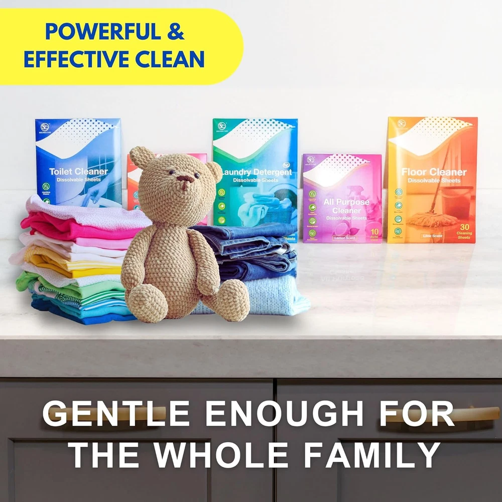 CLEAN HOME, HAPPY PLANET: Simply drop our dissolvable toilet cleaner sheets into the bowl to say goodbye to toilet rings. These fast-acting sheets target stubborn stains, mineral deposits, and odors, leaving your toilet sparkling clean and smelling fresh while protecting the environment. REDUCE CLUTTER: Save space, eliminate plastic waste, and simplify your life.Our soluble sheets' compact design minimizes packaging waste. Perfect for use at home, in the garage, at the office, or on the go. HIGHLY CONCENTRATED: Our cleaning sheets are designed with a powerful, highly concentrated formula, ensuring maximum cleaning efficiency with every use. Each sheet packs a punch, requiring only a small amount to tackle even the toughest stains and messes, making them both effective and economical. FRESH CLEAN SCENTS: Our sheets feature mild, refreshing scents that provide a clean atmosphere, unlike other cleaning products that leave behind strong, harsh chemical odors. NO RESIDUE & EASY TO USE: We understand the frustration with toilet cleaners that leave residue behind. That's why we've used water-soluble fibers that are safe for drains. You can trust that our cleaner sheets won't leave any residue in your toilet or cause potential clogs, ensuring a clean and hassle-free experience. Simply drop the sheets into the toilet bowl and wait about 30-90 seconds for them to fully dissolve. If needed, let them soak for 5-10 minutes. Then, scrub the toilet with a brush and rinse with water for a spotless finish. Product Description