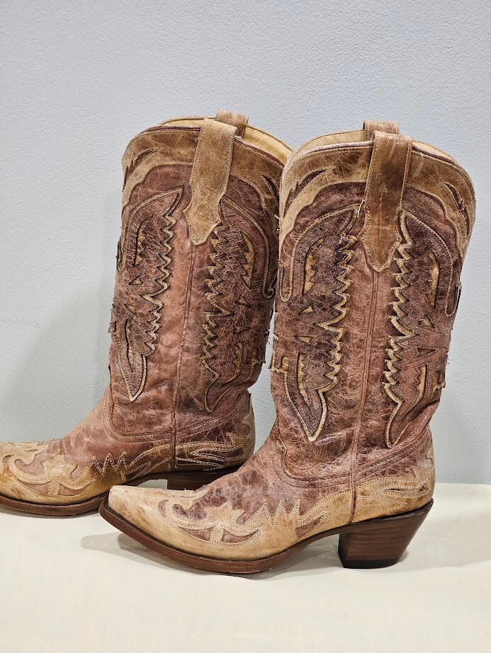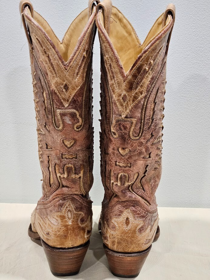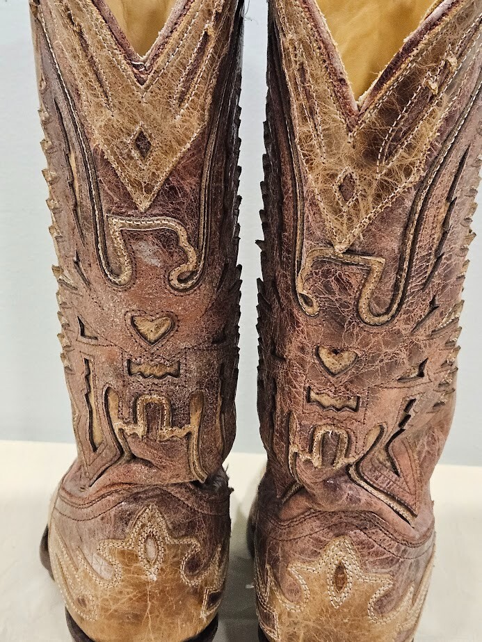 Corral Tan Leather Crackle Distressed Saddle Boot R2227 Size 8.5M. There is no damage or stains. Ships from a smoke free home! Please see all photos for exact item condition. Thank you for checking out my store! All items are shipped within 1 or 2 business days. Make a bundle to save on shipping cost.