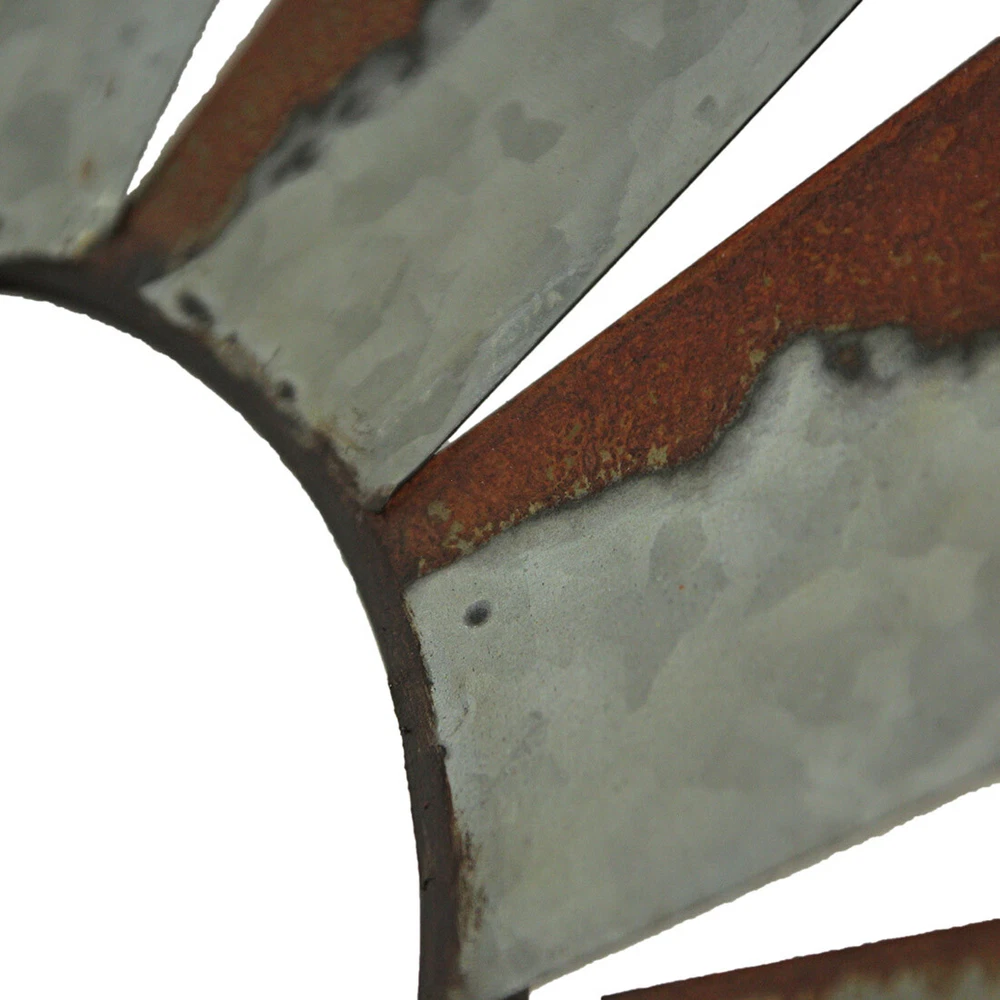 Overall Size - Embracing dimensions of 36 inches in length, 0.25 inches in width, and 17.25 inches in height, this windmill wall sculpture boasts an impressive presence, adding depth and character to your space. Creative Design - Meticulously crafted from galvanized metal, this artwork features a distinctive and stylish half-windmill design. Its unique structure showcases the creativity and craftsmanship that adorn your walls. Rustic Decoration - Sporting a distressed silver/grey vintage finish, complemented by faux rust accents, this wall piece exudes rustic charm. The simple metal wire frame adds to its authenticity, enhancing the weathered aesthetic. Our eBay Store About Us Add to Favorite Sellers Galvanized Grey Metal Half-Windmill Wall Sculpture - Large 36-Inch Rustic Art Piece - Easy Installation - Perfect for Country Farmhouse Themed Decor Overall Size - Embracing dimensions of 36 inches in length, 0.25 inches in width, and 17.25 inches in height, this windmill wall sculpture boasts an impressive presence, adding depth and character to your space. Creative Design - Meticulously crafted from galvanized metal, this artwork features a distinctive and stylish half-windmill design. Its unique structure showcases the creativity and craftsmanship that adorn your walls. Rustic Decoration - Sporting a distressed silver/grey vintage finish, complemented by faux rust accents, this wall piece exudes rustic charm. The simple metal wire frame adds to its authenticity, enhancing the weathered aesthetic. Western Decor - Perfectly suited for Western-inspired themes, this sculpture makes a striking statement. Ideal for adorning spaces above the mantel, window, door, or artwork, it effortlessly captures the essence of rustic elegance. Home Style - Tailored for rustic, country, or farmhouse-inspired interiors, this windmill sculpture finds its home in your living room, kitchen, or bedroom. Its timeless appeal seamlessly blends with your decor, enhancing the ambiance of your space. Transform your living space with the timeless elegance of this farmhouse-inspired rustic wall art piece, reminiscent of classic farm landmarks. Crafted with care, this 36-inch long, 17.25-inch high decorative windmill sculpture is the epitome of rustic charm. Its galvanized metal construction boasts a distressed silver finish, accentuated by faux rust detailing along the edges, creating a weathered vintage appearance that exudes character. Whether it graces your mantel, hangs above a door, window, or artwork, this piece becomes an eye-catching focal point, elevating your home decor to new heights. The intricate design captures the essence of a bygone era, evoking the charm of rural life. Its versatility allows for creative styling embellish it with delicate string lights and vibrant greenery for a touch of enchantment, or let it stand alone as a statement piece. This decorative windmill invites you to infuse your personal style, transforming any room into a haven of warmth and sophistication. Its small circle design, reminiscent of traditional farm windmills, adds a touch of nostalgia to your space. Whether your decor leans towards rustic, vintage, or modern farmhouse aesthetics, this windmill sculpture effortlessly complements any style, enhancing the ambiance of your home with its captivating allure. Embrace the rustic sophistication of this piece, and let it become a cherished addition to your home, reflecting your unique style and taste. Product Details Color Silver Height 18 Length 36 Weight 2.55 LB