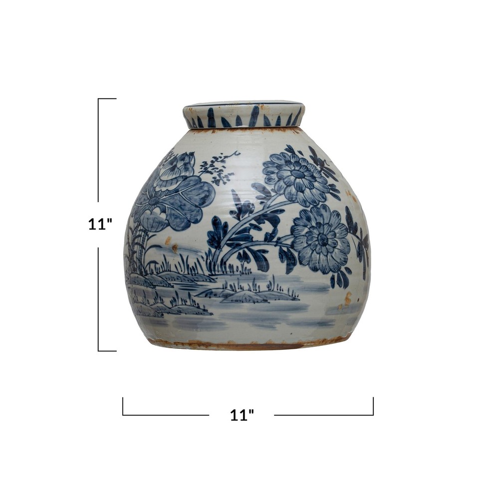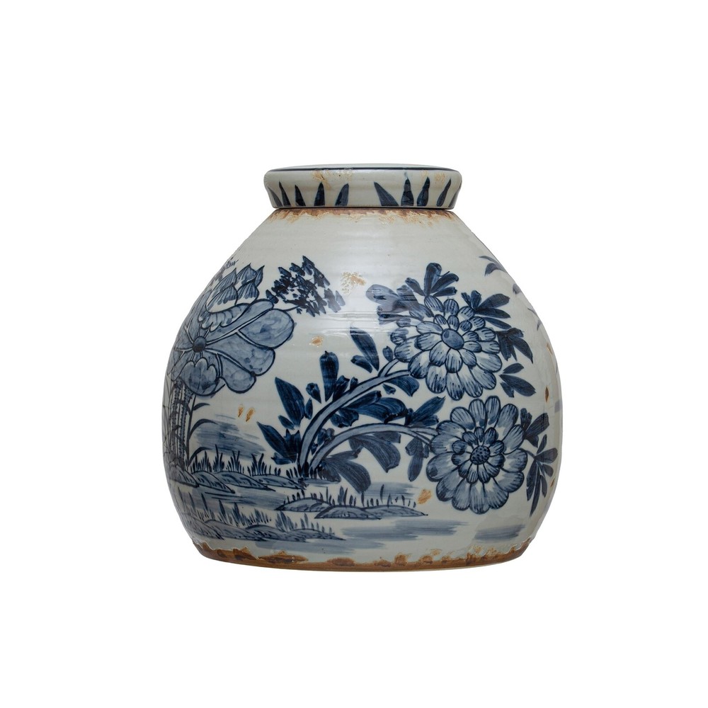 Distressed Stoneware Co-Op Jar with Floral Decorative Prints