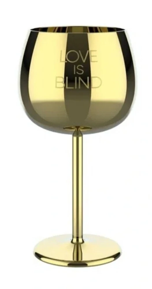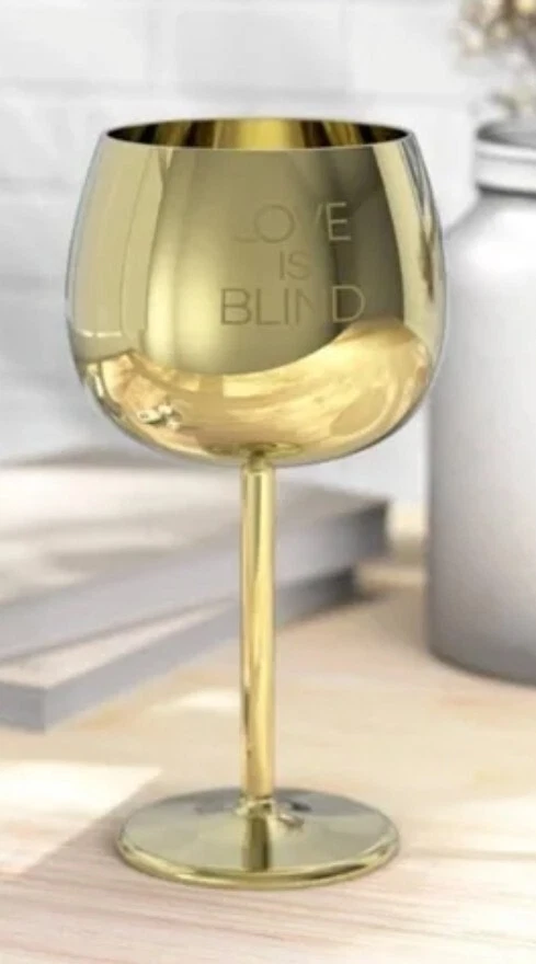 Add some fun to your divorce party with this Love is Blind wine glass Goblet. This gold-colored goblet features a novelty design and is perfect for celebrating and partying. Made of durable plastic, this wine glass is sure to impress your guests. The set includes 8 goblets and is great for those who love unique glassware. Ideal for those who are looking for a novelty item to add to their divorce party, this wine glass is a must-have for a memorable celebration.