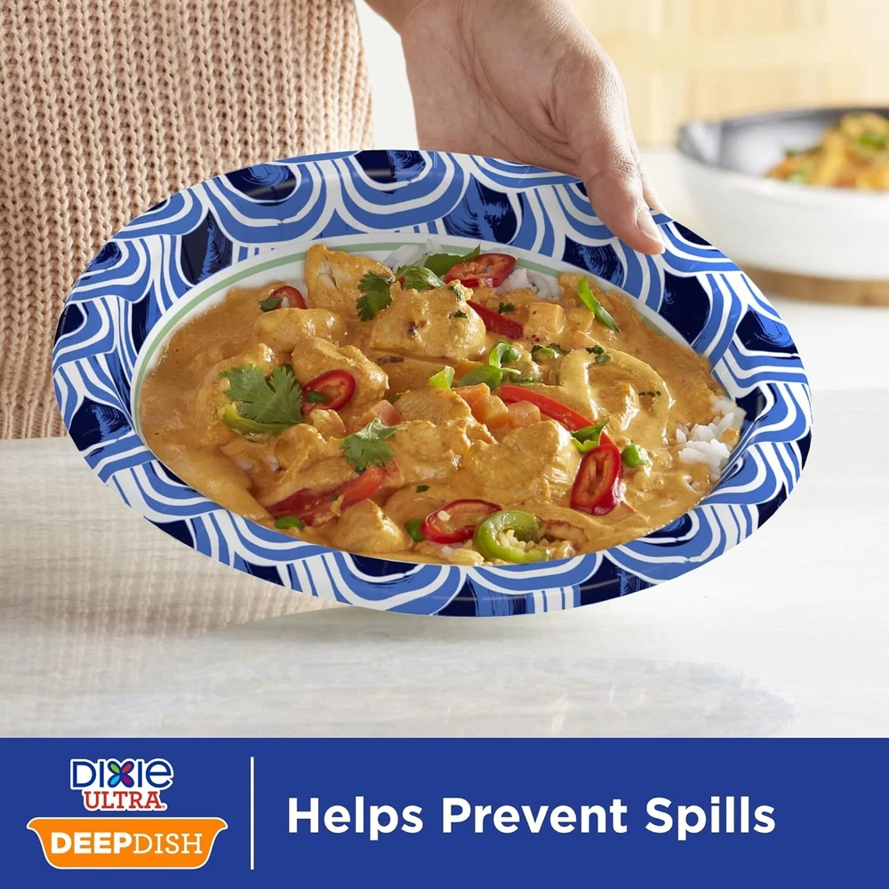 Dixie Ultra, Deep Dish Paper Plates, 28 Oz, 40 Count, Heavy Duty, Indigo Product Details Is Discontinued By Manufacturer : No Product Dimensions : 9.6 x 9.6 x 3 inches; 4 ounces Item model number : 16046 Material Feature : Compostable Warning Manufacturer : Georgia Pacific Country of Origin : USA Material: Paper Brand: Dixie Color: Indigo Special Feature: Disposable,Durable,Resistant Occasion: Holiday Dixie Ultra Deep Dish disposable plates feature a Soak Proof Shield—perfect for serving up your messiest, sauciest meals These 28 ounce disposable paper plates are made extra deep to help keep food like chili, spaghetti and stews from spilling out, plus they’re microwaveable and cut-resistant Dixie Ultra heavy duty paper plates and paper bowls are now backyard and commercially compostable With sustainability and conservation in mind, our responsibly made products use virtually every part of the trees we process and the trees used for Dixie products are replenished This paper plates pack includes 40 compostable paper plates 28 ounce NEW LOOK, SAME GREAT PAPER PLATE - and now commercially and backyard compostable! Serve up all your favorite foods with confidence on our Dixie Ultra® Deep Dish paper plates - designed extra deep with wide, strong rims to help keep your favorite chili, pasta, stews and more from spilling over and creating a mess. Dixie Ultra® disposable plates are also microwavable, cut resistant and have a Soak Proof Shield that’s specially designed to keep wet meals with liquids and sauces from soaking through the bottom. And with their stylish multicolor designs, Dixie Ultra® products are always an easy and attractive alternative to using (and washing) real dishes. Count on Dixie Ultra® products when you’re entertaining family or friends or planning a special event or celebration. After all, whether you’re hosting a holiday meal, planning a party or just entertaining in the backyard, you’ll appreciate the convenience and peace of mind Dixie Ultra® products bring. All Dixie branded paper bowls, cups and plates manufactured in Georgia-Pacific facilities are kosher certified by the Orthodox Union. If you don’t have a dedicated area in your home or backyard for composting, Dixie Ultra® paper plates and bowls may be commercially composted if such facilities exist in your area. Each pack contains 40 paper plates 28 ounce. Stock up today!